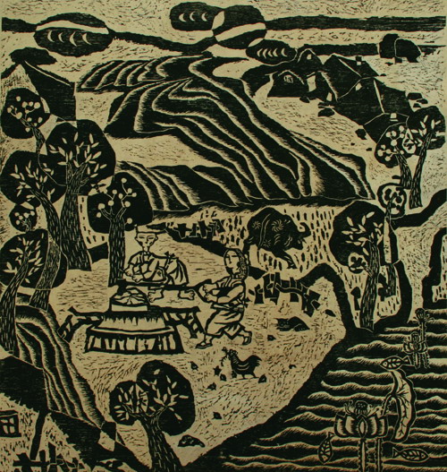陈菽现《悠然南山·之二》 木版 90cm×85cm 1994年作