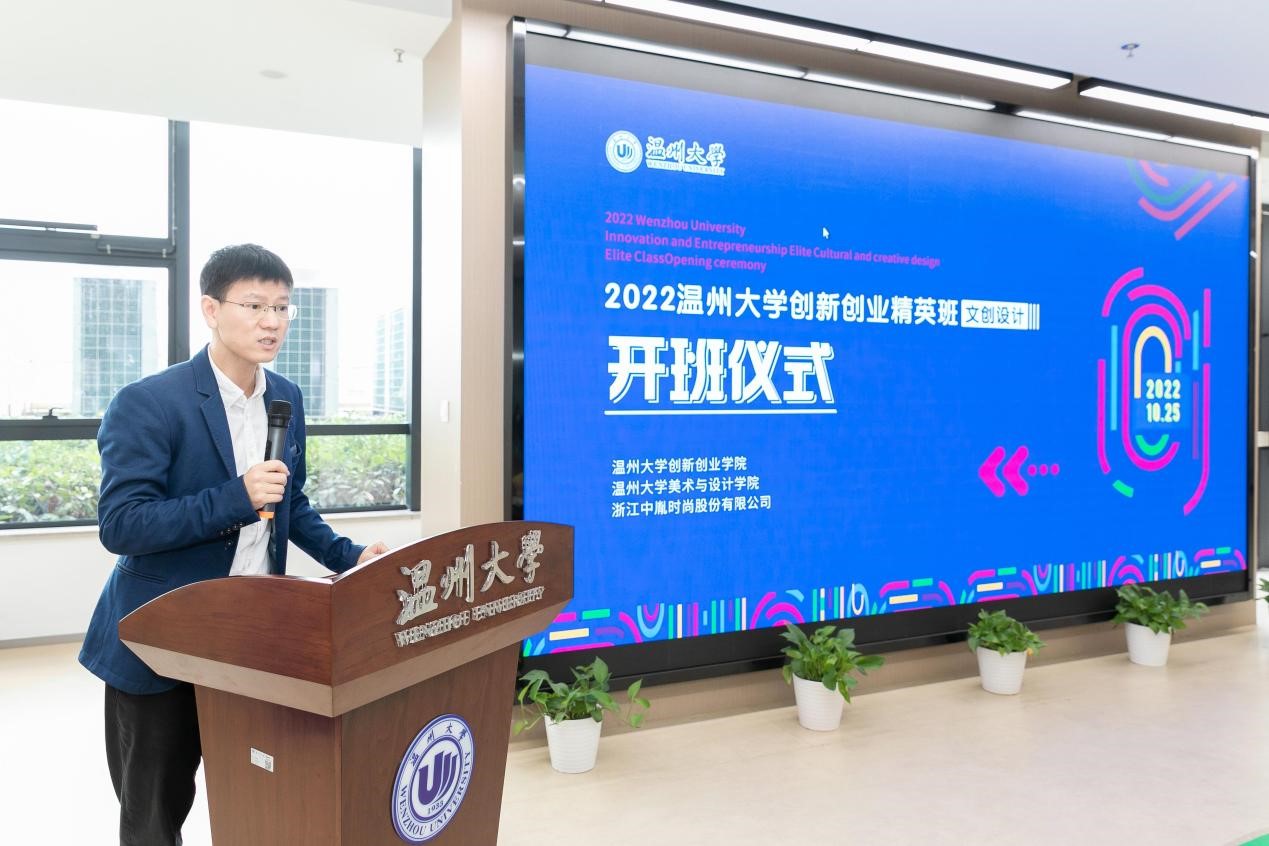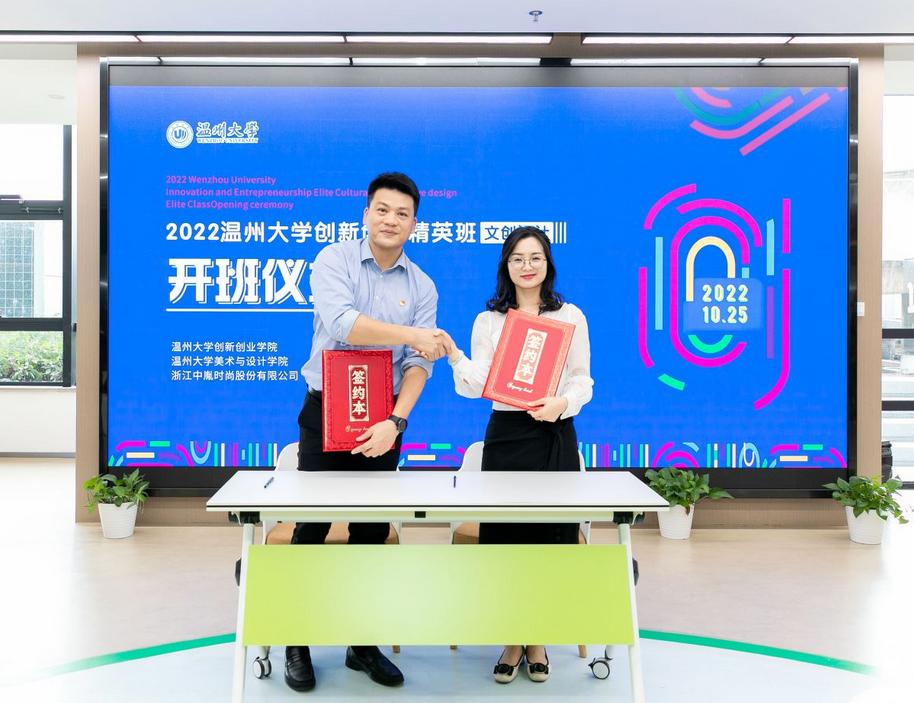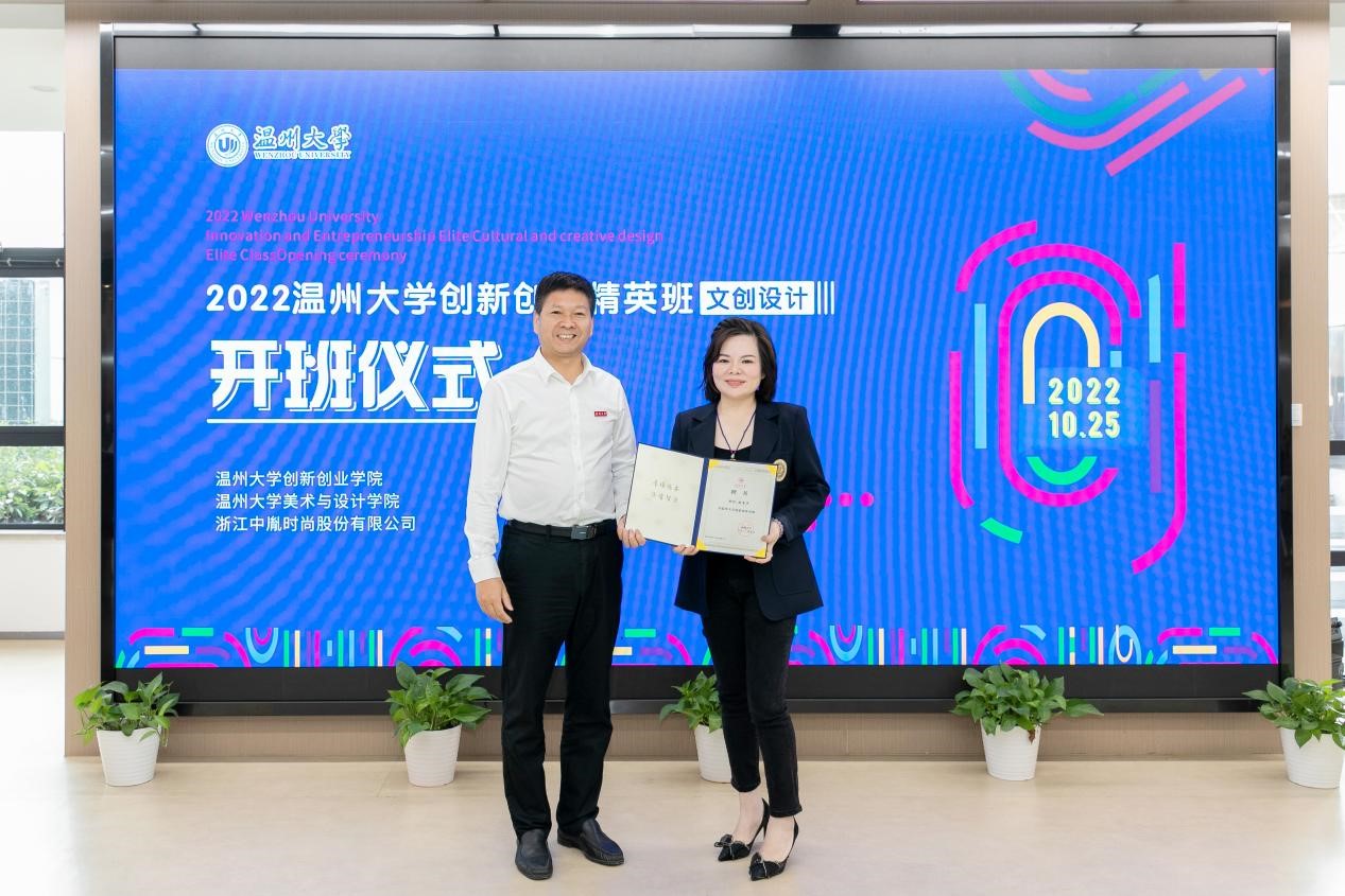 10月25日上午,beat365英国官方网站创新创业精英班(文创设计)在学校科技综合大楼4楼路演厅举行开班仪式,beat365英国官方网站党委副书记庄兴忠,浙江中胤时尚股份有限公司董事长倪秀华、副总经理童娟、人事经理王春丽,创新创业学院院长施永川,beat365英国官方网站院长谢子静、党委书记叶正飞等出席开班仪式,beat365英国官方网站副院长胡文超主持仪式。 校党委副书记庄兴忠到场见证开班仪式,并向倪秀华董事长颁发beat365英国官方网站创新创业导师聘书。 施永川院长发表创新创业精英班开班致辞。他介绍了beat365英国官方网站创新创业教育办学特色和荣誉成果,展望了校企合作举办的“创新创业精英班(文创设计)”在推广专业教育与创业教育深度融合的美好愿景。 施永川院长致辞 倪秀华董事长随后发表讲话。中胤时尚股份作为以时尚产品发展为核心的A股上市企业,与温大共建“创新创业精英班”,这是产学合作的新模式,能够推动创新开拓型人才培养,有效赋能温州时尚产业。 倪秀华董事长讲话 谢子静院长给创新创业精英班(文创设计)的代表授予班旗。 谢子静院长授班旗 随后,叶正飞书记和童娟副总经理代表校企双方签订中胤公司-beat365英国官方网站精英班(文创设计)共建协议。施永川院长和谢子静院长向创新创业精英班的校内外指导教师颁发导师聘书。 签订共建协议 颁发校内外导师聘书 接着,视觉传达设计系主任刘俊代表导师组宣布了精英班的文创设计创作主题,将围绕中胤企业命题、校园文创、海岛文创等三方面开展今后的设计教学。郑淇同学代表班级发言,她向校企各方提供这次宝贵学习机会,致以谢意,并表示趁着青春年华,时光正好,在今后学习中要把握机会,大胆尝试。 宣布文创设计主题 学员代表发言 最后,美术学院张洪霞同学、机电学院杨占瑞同学分别分享了创新创业项目“土日子文创产品设计项目”“云朵眼镜:一站式数字化服务平台项目”。之后,精英班同学参观了学校众创空间。 领导嘉宾与师生合影留念 当天下午,创新创业精英班(文创设计)师生前往浙江中胤时尚股份有限公司现场考察和参加讲座。公司运营总监叶超介绍了公司的价值理念、愿景、设计成果等,并介绍“为设计”原创设计师平台。中胤公司顾问、资深市场分析专家张昕博士作为校外导师,开展了《可持续设计》主题讲座,并且与同学们互动交流。 叶超总监带领师生参观企业 张昕博士开展讲座 精英班学员合影留念