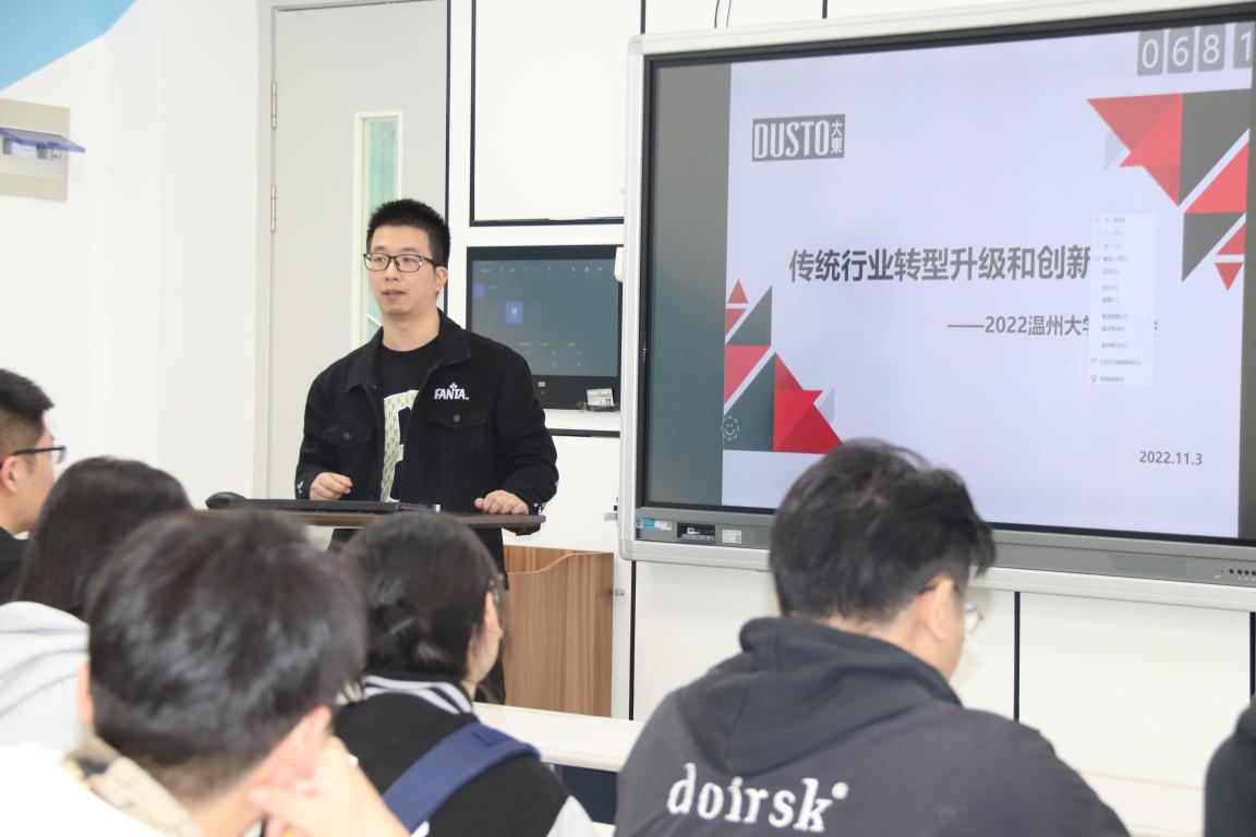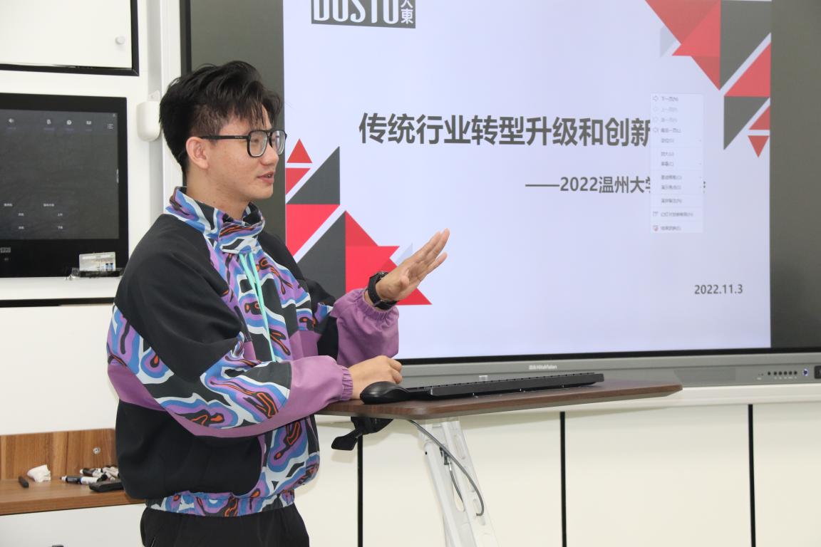 宣讲会第一个环节,由顾院长向参会同学们介绍了大东品牌在温州乃至全国的知名度,beat365官网与大东开展校企合作的历程和往届毕业生签约等情况,并鼓励同学们把握校园招聘会的契机,以积极的态度和饱满的热情,充分展示自己的专业技能和才华,实现高质量就业。