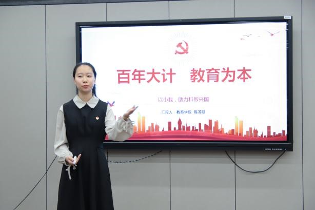 各参赛选手到场后根据抽签顺序,并以“这句话我最有共鸣”为主题,进行限时5分钟的演讲。每位上场演讲的同学都表现得十分精彩:邢俊艳同学通过人民楷模朱彦夫以鸿鹄之志成就非凡人生的例子,提出了“为将之道,当先立心”、“空谈误国,实干兴邦”和“穷山距海,无远弗届”三个逐梦阶段;杨文斌同学将姐姐如何凭借自己的努力走出大山、又如何毅然决然返回大山带领全村脱贫攻坚的故事倾情讲述,呼吁温大学子要“到祖国和人民最需要的地方去”;陈苏晗同学围绕“百年大计 教育为本”的核心为我们解答了“为谁培养人”、“培养什么人”和“怎么样培养人”三个重要问题,表明了以小我助力科教兴国的决心……