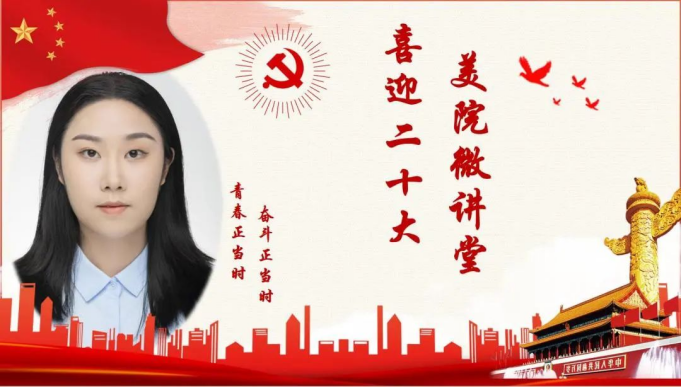 本期“喜迎党的二十大 美院微讲堂”活动由温大美院学生党员杨慧琳进行宣讲,带领大家学习党章的基本内容。中国共产党第十九次全国代表大会,对中国共产党章程又做了多方面的重要修改。主要是体现了十八大以来马克思主义中国化的最新发展成果,体现了以习近平同志为核心的党中央治国理政新理念新思想新战略,体现了坚持和加强党的领导、全面从严治党的经验。
