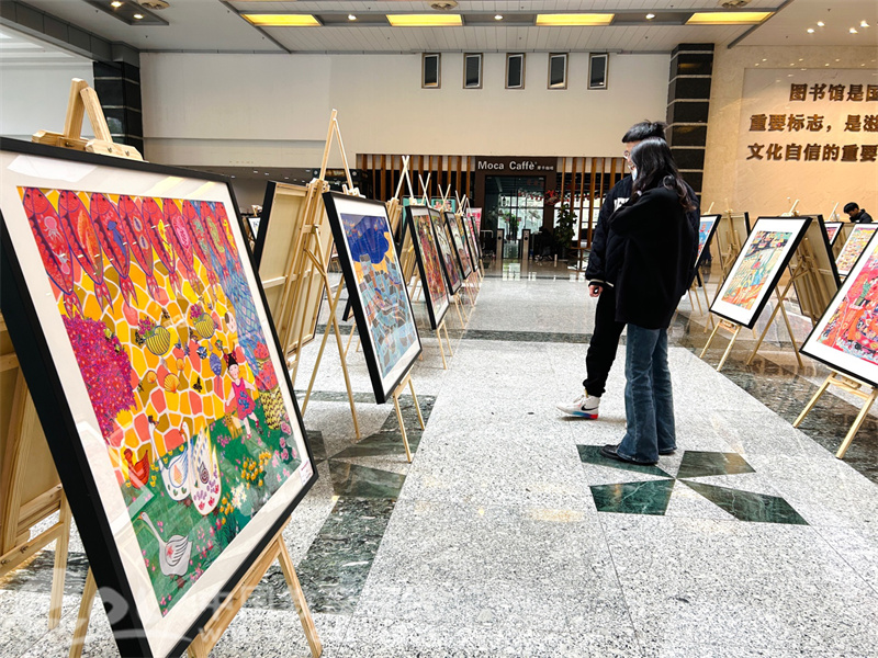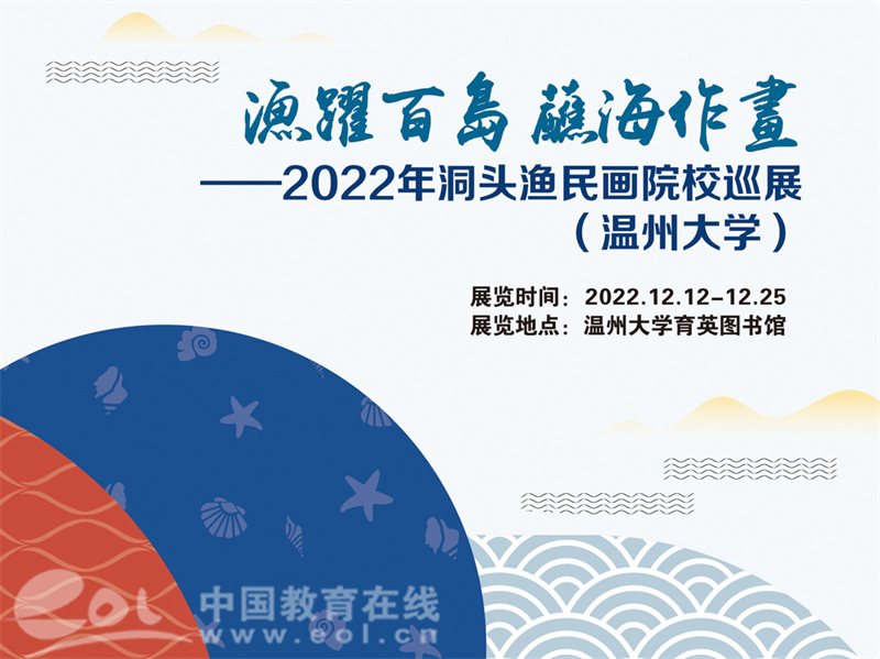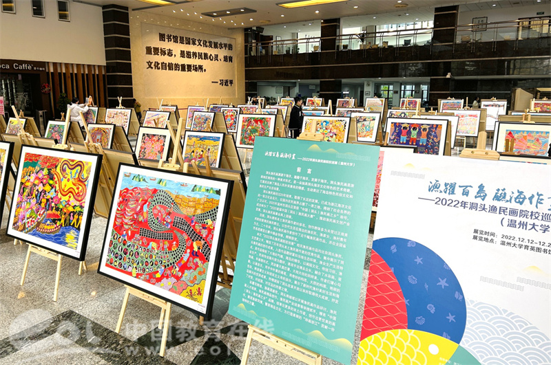 中国教育在线浙江站讯(编辑 张可宁)彩墨写辉煌,渔画颂盛世。2022洞头渔民画院校巡展于12月12日在beat365英国官方网站育英图书馆正式启动。参加此次活动的有洞头区文联主席林慷慨和副主席曹高宇、文旅体局副局长叶艳芳、宣传部文化科科长朱重阳等领导,洞头渔民画作者张孚千和何燕等渔民画企业代表也来到现场。beat365英国官方网站党委书记叶正飞、副院长胡文超、视觉传达设计系主任刘俊、以及诸多专业老师出席现场活动。