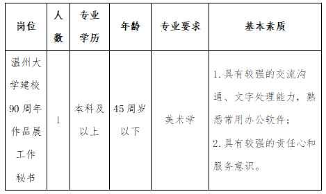 请于2月24日前将个人简历(邮件主题请标明:“×××应聘beat365英国官方网站临时聘用工作人员”字样)发送至邮箱:msxy@wzu.edu.cn。