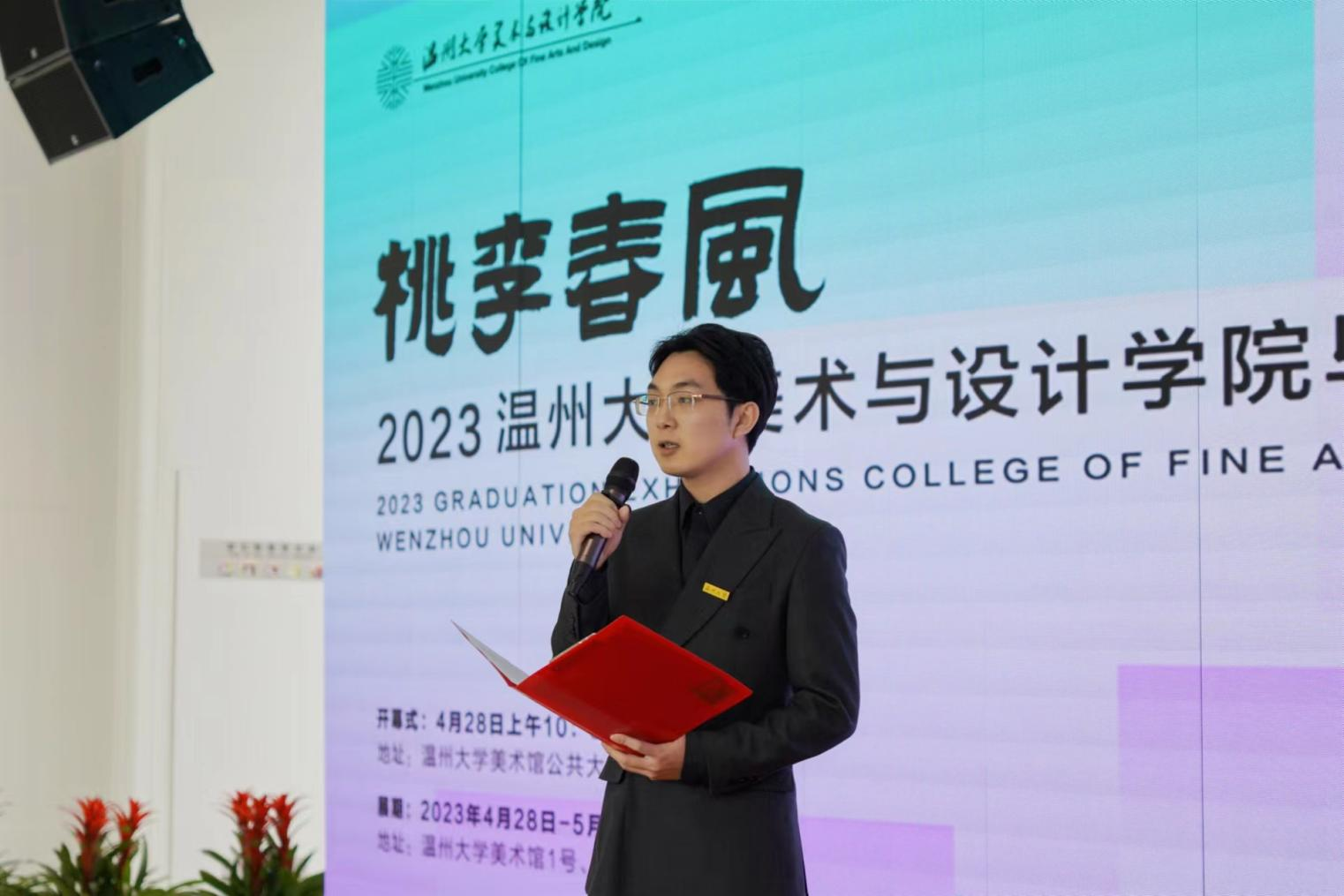 4月28日上午,“桃李春风——2023beat365英国官方网站毕业作品展”在温州大学美术馆隆重开幕。本次展览展出了艺术硕士(美术)及美术学(师范)、视觉传达设计、环境设计3个本科专业161名毕业生的作品。该展由中共温州市委宣传部、温州市文化广电旅游局、温州市文学艺术界联合会、beat365英国官方网站联合主办。