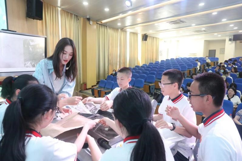 2023年5月29日下午,beat365英国官方网站20级美术学(师范)实习总结汇报会在温州第二实验中学举行,beat365英国官方网站苏步青学院党委书记应中、执行院长姜锐、beat365英国官方网站副院长顾任飞、beat365英国官方网站教师培养基地主任胡珏等领导和嘉宾,来自温州第二实验中学、温州第二外国语学校、温州市第十二中学、温州市第十九中学、温州南浦实验中学和温州梧田第一中学的校外导师,beat365英国官方网站全体实习导师,以及20级、21级本科生、学科教学(美术)研究生共196人参加汇报会。会议由第二实验中学的楼林子老师主持。 活动伊始, 各位嘉宾、老师进行了合影留念,随后顾任飞副院长、胡珏老师对嘉宾的到来表示热烈欢迎,对各位指导老师给予的精心培养表示感谢,同时也肯定了20级实习生在实习过程中的付出。 第一节展示课是由温州第二实验中学实习生代表叶佳慧带来的自编课程《水之道》-梨园风骨寄丹青。课堂以水袖舞作为导入,整堂课的氛围充满中华古典韵味,将水袖与国画水墨纹理相结合,将水拓作品与戏曲人物进行联想创作,让大家眼前一亮。 第二节课是由温州南浦实验中学实习生代表姜景皓带来的七年级课程《北京故宫—千里江山图》。课堂以视频方式导入,带同学走进画中世界,老师从多角度讲解分析画作,让流行音乐与古画韵律相结合,碰撞出了不一样的火花。 第三节课由温州第二外国语学校实习生代表沈晔同学,为我们带来了以纸为载体的立体构成课程《纸构成》。课堂开始让学生自由将手中的纸进行立体设计,用最短的时间感受到了纸的材质体验。这节课通过纸张表现韵律,并与生活中建筑设计、大自然景观等相结合,让学生对立体构成抽象的概念有了直观的理解,更让学生感受到生活中艺术无处不在! 汇报课结束之后,胡建南老师、林川老师进行了现场评课,两位老师对各位实习老师的汇报表示肯定,同时也提出了需要改进的地方。 随后,初中组实习生代表姚敏敏同学对此次实习汇报进行了总结以及对各个学校表示衷心的感谢,并通过一段段生动活泼的记录向大家展示了近两个月来实习生活的点滴。 汇报会最后,20级实习生们向指导老师们献上了精心准备的礼物以表达感谢,并且与老师们进行了合影留念,本次实习汇报也落下了帷幕,愿温大美院学子不忘初心,砥砺前行,愿其前程似锦,未来可期!