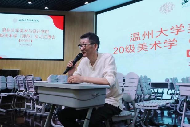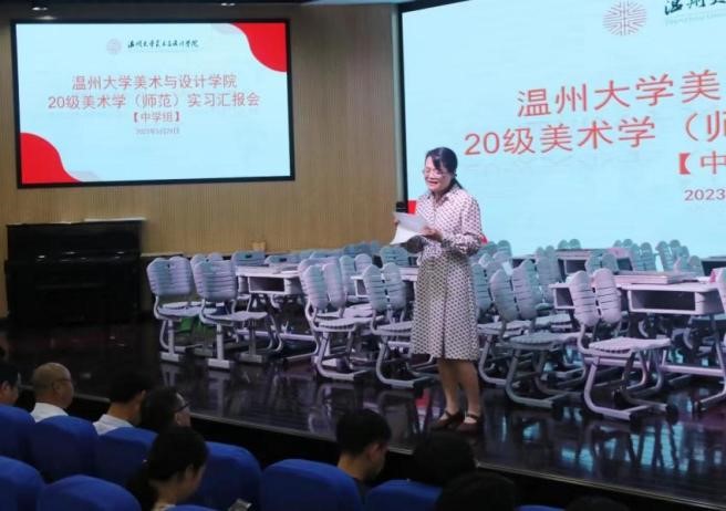 2023年5月29日下午,beat365英国官方网站20级美术学(师范)实习总结汇报会在温州第二实验中学举行,beat365英国官方网站苏步青学院党委书记应中、执行院长姜锐、beat365英国官方网站副院长顾任飞、beat365英国官方网站教师培养基地主任胡珏等领导和嘉宾,来自温州第二实验中学、温州第二外国语学校、温州市第十二中学、温州市第十九中学、温州南浦实验中学和温州梧田第一中学的校外导师,beat365英国官方网站全体实习导师,以及20级、21级本科生、学科教学(美术)研究生共196人参加汇报会。会议由第二实验中学的楼林子老师主持。