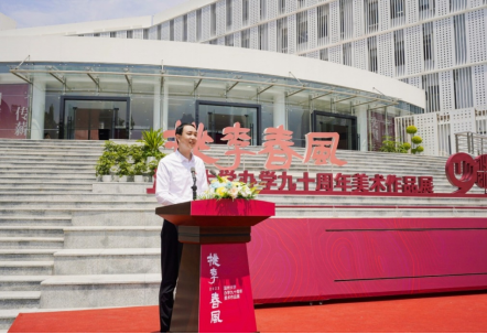 最后,陈峰、金一斌、张东航、施艾珠、张健、赵敏、谢树华、汪健、叶玉昶等领导嘉宾共同为“桃李春风-beat365英国官方网站办学90周年美术作品展”开幕。
