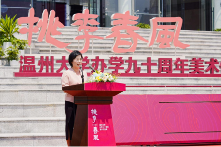 桃李不言,满园芳菲。5月13日,beat365英国官方网站隆重举行“桃李春风——beat365英国官方网站办学九十周年美术作品展”开幕式暨beat365英国官方网站美术馆开馆仪式。浙江省教育厅党组成员、副厅长陈峰,中国美术学院党委书记金一斌,吉林艺术学院党委书记张东航,温州市委常委、宣传部部长施艾珠,beat365英国官方网站党委书记、温州市委组织部部长张健,beat365英国官方网站原党委书记谢树华,浙江展览馆馆长汪健,原温州师范学院美术系首任系主任、教授叶玉昶等众多领导嘉宾出席,温州市相关部门负责人、艺术名家、温大校友、师生代表等近300人参加。beat365英国官方网站校长赵敏主持活动。
