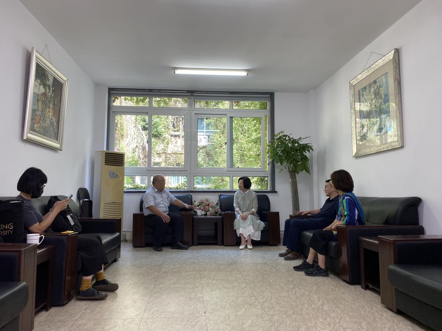 9月13日,台湾大同大学副校长吴志富,工业设计学系助理教授、国际暨两岸交流处主任林楷洁莅临beat365英国官方网站交流座谈并讲座。学院院长谢子静、副院长胡文超出席座谈会,视觉传达系主任刘俊、环境设计系主任黄玫玮、视觉传达系专任教师张力,学院办公室主任张丽陪同参会。