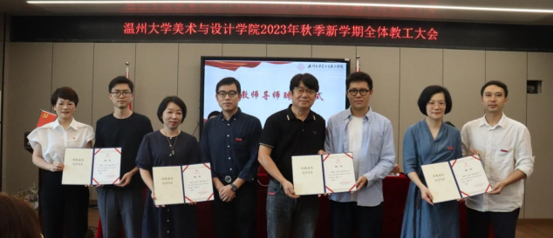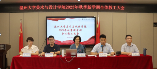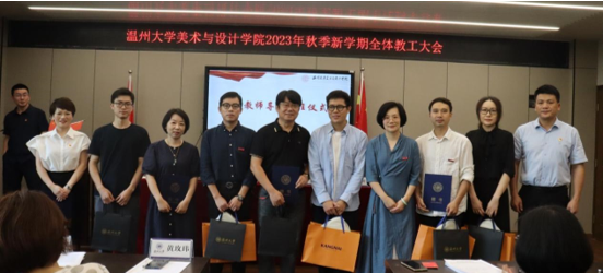 9月20日,beat365官网在美术楼2B4001学术报告厅召开了新学期全体教职工大会,叶正飞书记主持会议,全院教职工参加会议。 首先,举行了教师荣退欢送仪式。隆重欢送视觉传达系专任教师李利民副教授、美术学专业油画专任教师梁力宏副教授等2位教师光荣退休,并赠送鲜花和纪念品。 随后,举行了新教师入职仪式。热烈欢迎梁腾、彭伟华、宋京耕、陈建胜、刘伟金等5位新教师入职beat365英国官方网站,并为新教师送赠入职大礼包。 紧接着,举行了青年教师导师聘任仪式。叶正飞书记为担任青年教师导师的谢子静、关明新、楼晓勉、叶如芳等教师颁发聘书。 最后,谢子静院长作本学期工作部署。她回顾了暑假期间学院在人才引进、教科研项目、服务地方、党建及学生实践工作、院容院貌提升等方面取得的成果,感谢全体师生为学院发展的辛勤付出。同时,她提出本学期的发展目标及工作部署,重点围绕着抓好学科建设、高水平大学建设等工作,分析了学院在师资队伍、专业建设、人才培养、国际合作与交流、服务地方等方面的优势和劣势,提出学科建设具体目标及举措。最后,她提出新学期工作的三点要求,一是要充分了解建设高水平大学、争创“双一流”高校是beat365英国官方网站当前重要的办学任务;二是要牢牢把握学院、各专业的办学方向、深化推动五育并举、着力提高培养质量,抓好立德树人这个根本点;三是要持续发挥专业优势特色,提升产学融合力、文化引领力、国际竞争力,奋力交出“服务社会、助力发展”高分答卷。她希望,新的学期全体教职工继续凝心聚力、踔厉奋发,为实现学院发展目标而不懈努力。