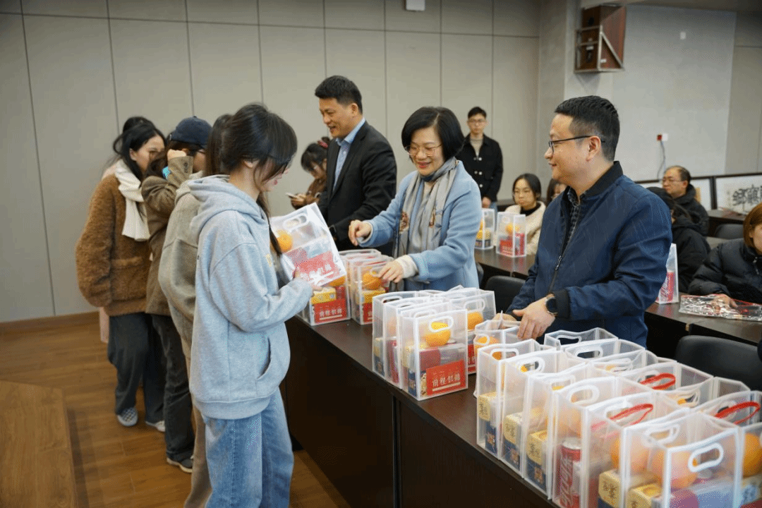 活动中,学院领导为同学们分发了“考研大礼包”,表达了学院对考研同学的关心关怀,为同学们加油打气,振奋精神。