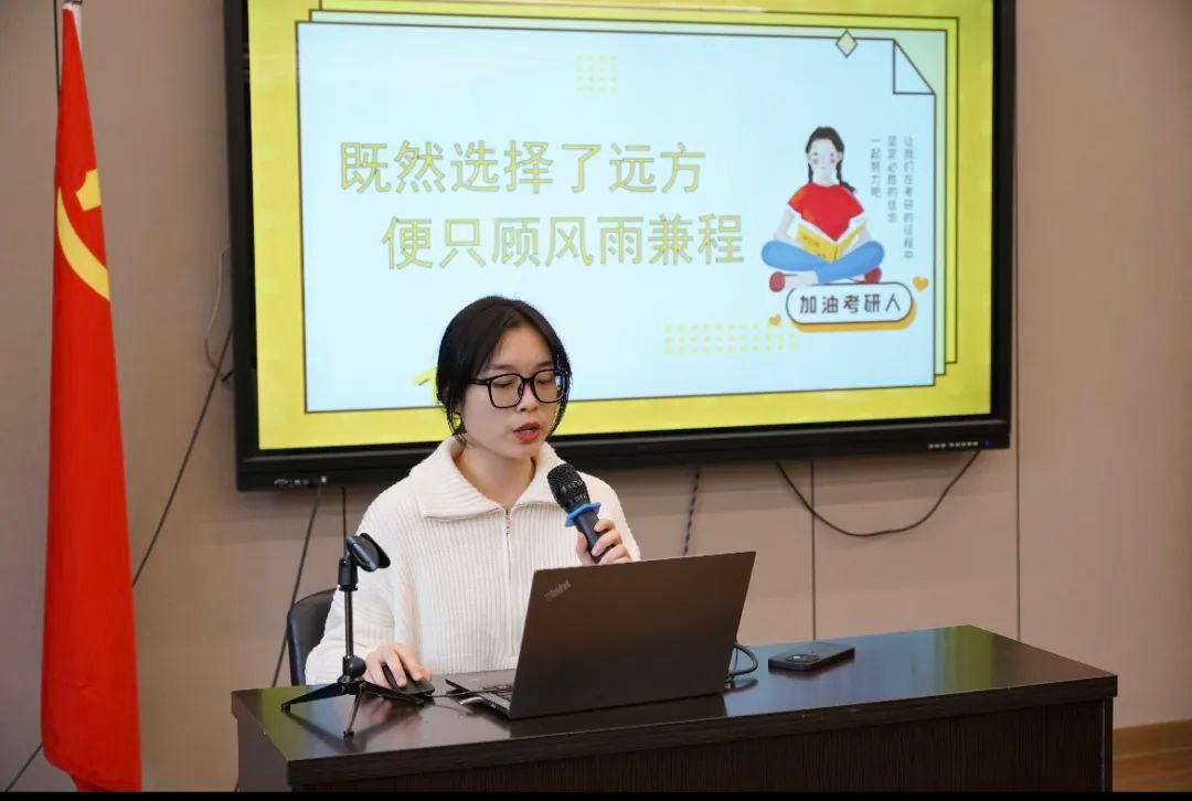 考研慰问活动环节,谢子静院长表达了对即将参加考试学生的关怀和慰问。她表示,一年一度的全国硕士研究生统一招生考试已经进入冲刺阶段,备考一路走来充满充满艰辛与坎坷,最后时刻,希望同学们能稳定心态,调整好身体状态,勇往直前,坚定必胜决心,预祝同学们都能考研成功。