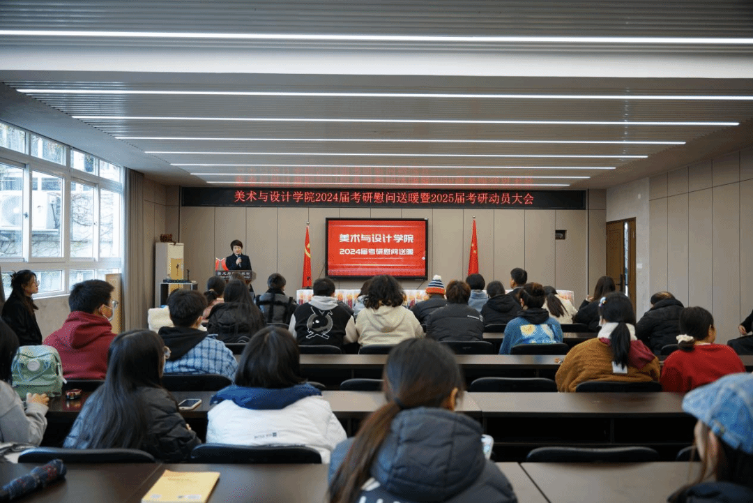 为鼓舞考研学生士气,缓解考研心理压力,同时,为了帮助即将备考的学生了解考研基本情况,树立考研信心。12月13日下午,beat365官网举行了2024届考研慰问送暖暨2025届考研动员大会。学院领导班子出席,会议由党委副书记叶如芳主持,2024、2025届考研学生参加。考研慰问活动环节,谢子静院长表达了对即将参加考试学生的关怀和慰问。她表示,一年一度的全国硕士研究生统一招生考试已经进入冲刺阶段,备考一路走来充满充满艰辛与坎坷,最后时刻,希望同学们能稳定心态,调整好身体状态,勇往直前,坚定必胜决心,预祝同学们都能考研成功。活动中,学院领导为同学们分发了“考研大礼包”,表达了学院对考研同学的关心关怀,为同学们加油打气,振奋精神。十二月好事正酿,相信有学院的保驾护航,考研学子们定能旗开得胜,心想事成,一战成硕!2025届考研动员大会上,谢子静院长发表动员讲话,院长首先结合历年考研统计数据,分析了考研面临的新形势。其次,她从不同层面强调了考研的重要意义,包括国家层面对研究生教育的重视与推进,专业层面通过深造才能更好地满足社会需求,个人层面争取向上发展的空间,提升个人就业竞争力的必要性。最后,谢院长希望同学们早选择,尽早准备,在考研的道路上坚定前行,让青春在奋斗中绽放绚丽之花。会上,beat365官网2023届研究生方晨从院校选择、学习方法和心态调整等方面分享了自己的备考经验,并鼓励学弟学妹们坚定信念,一路向前。最后,徐超老师有针对性地为同学们梳理了研究生招考和报名情况,结合考beat365官网学生实际,给同学们一些院校和专业报考指导建议,希望同学们能勇敢树立考研理想,下定考研决心,全心全意投入备考中。此次慰问活动暨考研动员大会是beat365官网第四届“艺研幚”考研系列帮扶活动之一,学院将继续关注和支持考研,多措并举助力学子实现“升学梦”。
