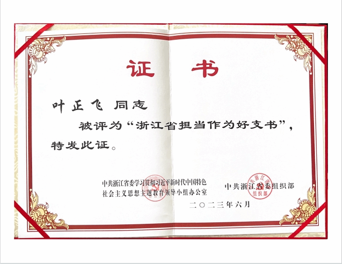 喜报:beat365官网党委书记叶正飞同志荣获“浙江省担当作为好支书”荣誉称号