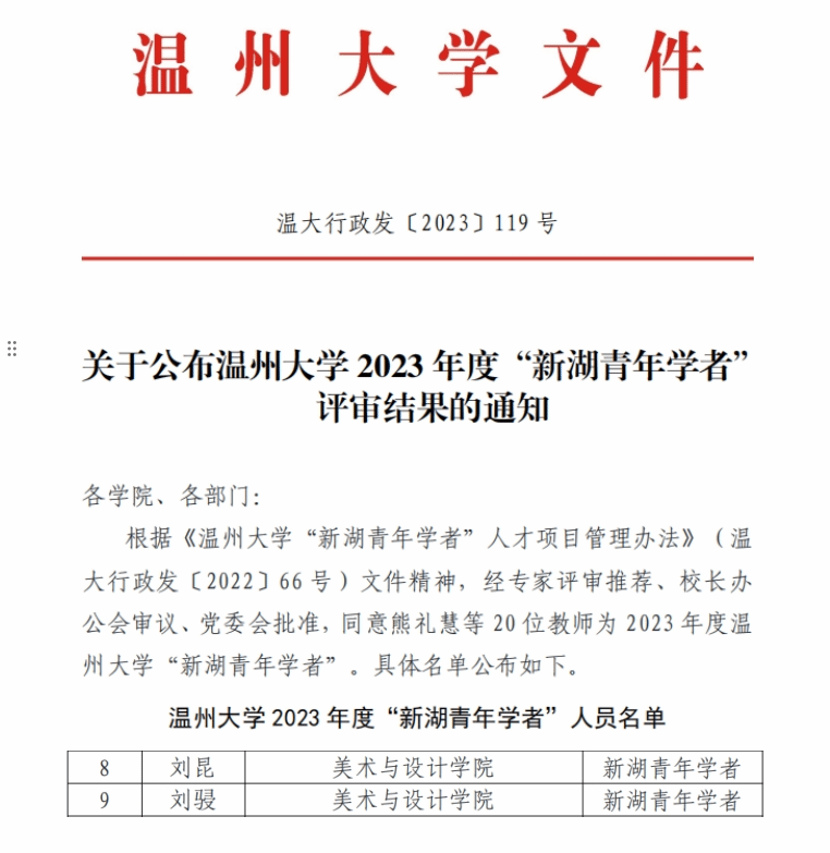 喜报:beat365官网教师刘昆、刘骎同志荣获beat365英国官方网站“新湖青年学者”人才称号