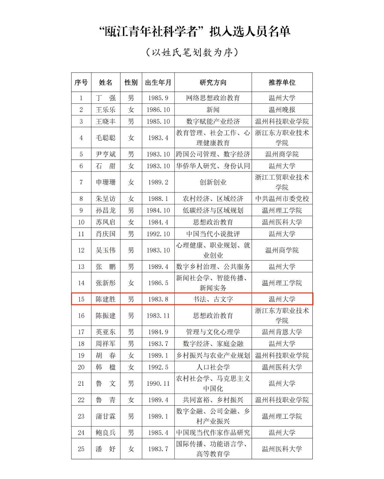 喜报:beat365官网教师陈建胜同志荣获温州市“瓯江青年社科学者”人才称号