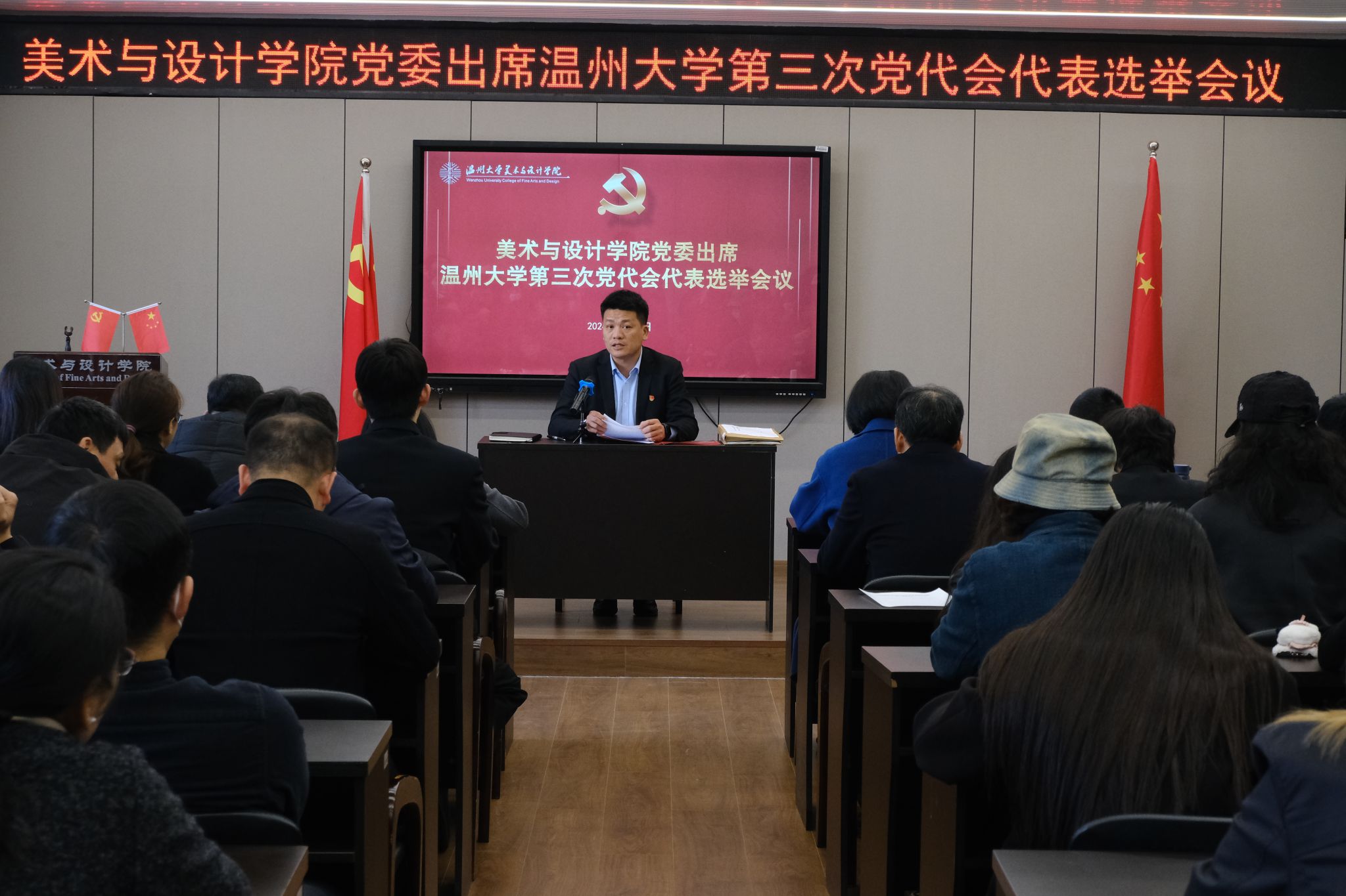 为了迎接beat365官网第三届党代会顺利召开,根据校党委有关文件,3月20日下午,beat365英国官方网站于2B4001举行出席中国共产党beat365英国官方网站第三次代表大会代表选举会议,学院全体师生正式党员共计117名参加,本次会议由学院党委书记叶正飞主持。