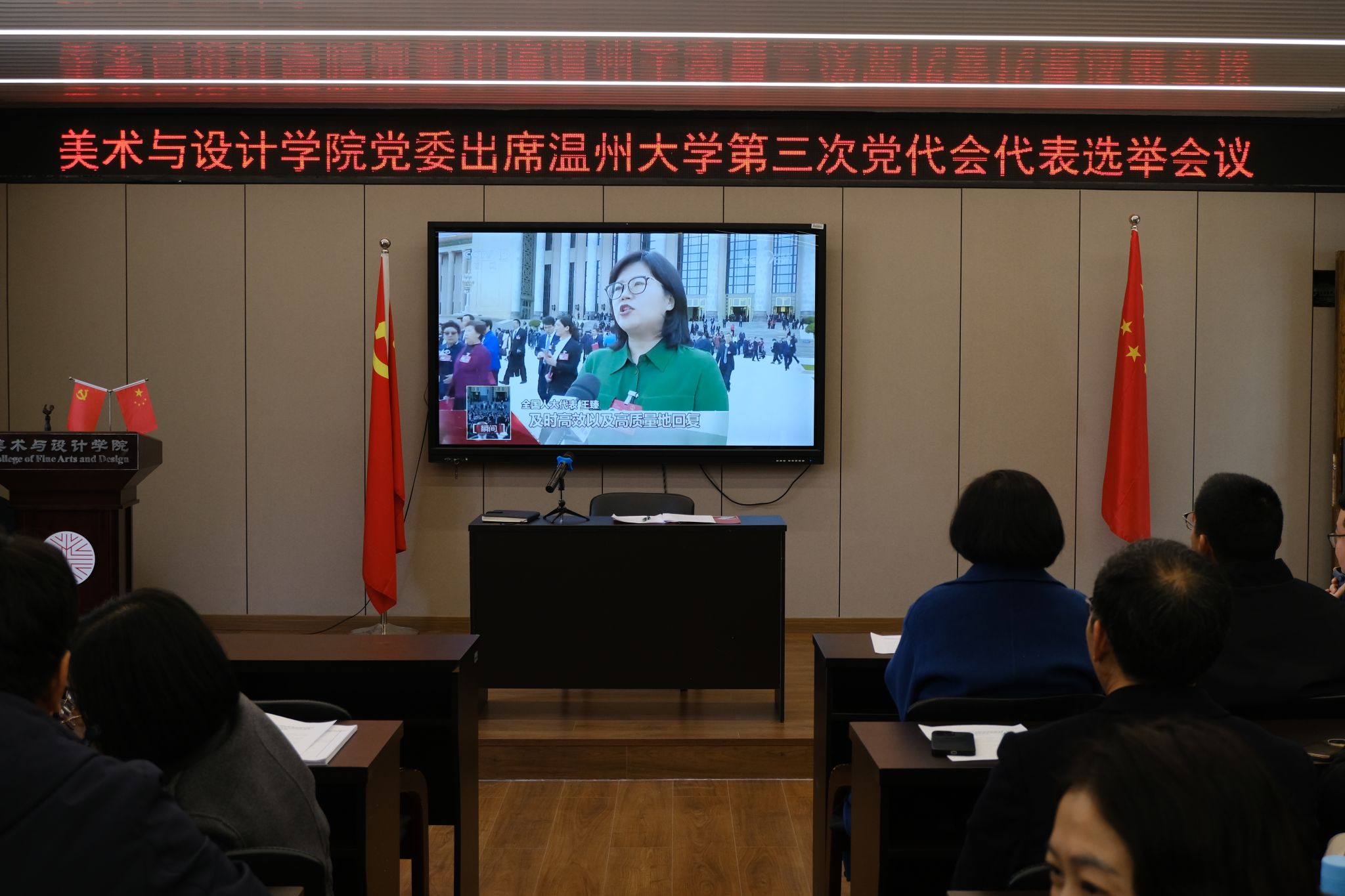 计票期间,全体党员学习观看了全国两会精神相关视频。两会是全国人民十分关注的政治盛会,是与时俱进、民主团结、求实鼓劲的大会。此次会议对于进一步动员和激励全国各族人民全面贯彻落实党的精神和落实“十三五”规划新举措,高举伟大旗帜,继续解放思想,坚持改革开放,推动科学发展,促进社会和谐,夺取全面建设小康社会新胜利,具有十分重要的意义。通过认真学习全国两会精神,大家都为祖国取得的辉煌成就感到自豪,同时对国家未来的发展坚定信心。