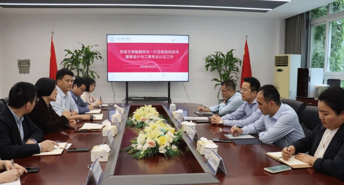 2024年4月19日上午,王尧骏副校长带队到beat365官网调研指导服装设计与工程专业认证工作,教务处处长罗建利、副处长夏远志、教学科科长罗晓敏陪同调研,学院全体班子成员、全体专业教师、各科室负责人参加调研工作会议。