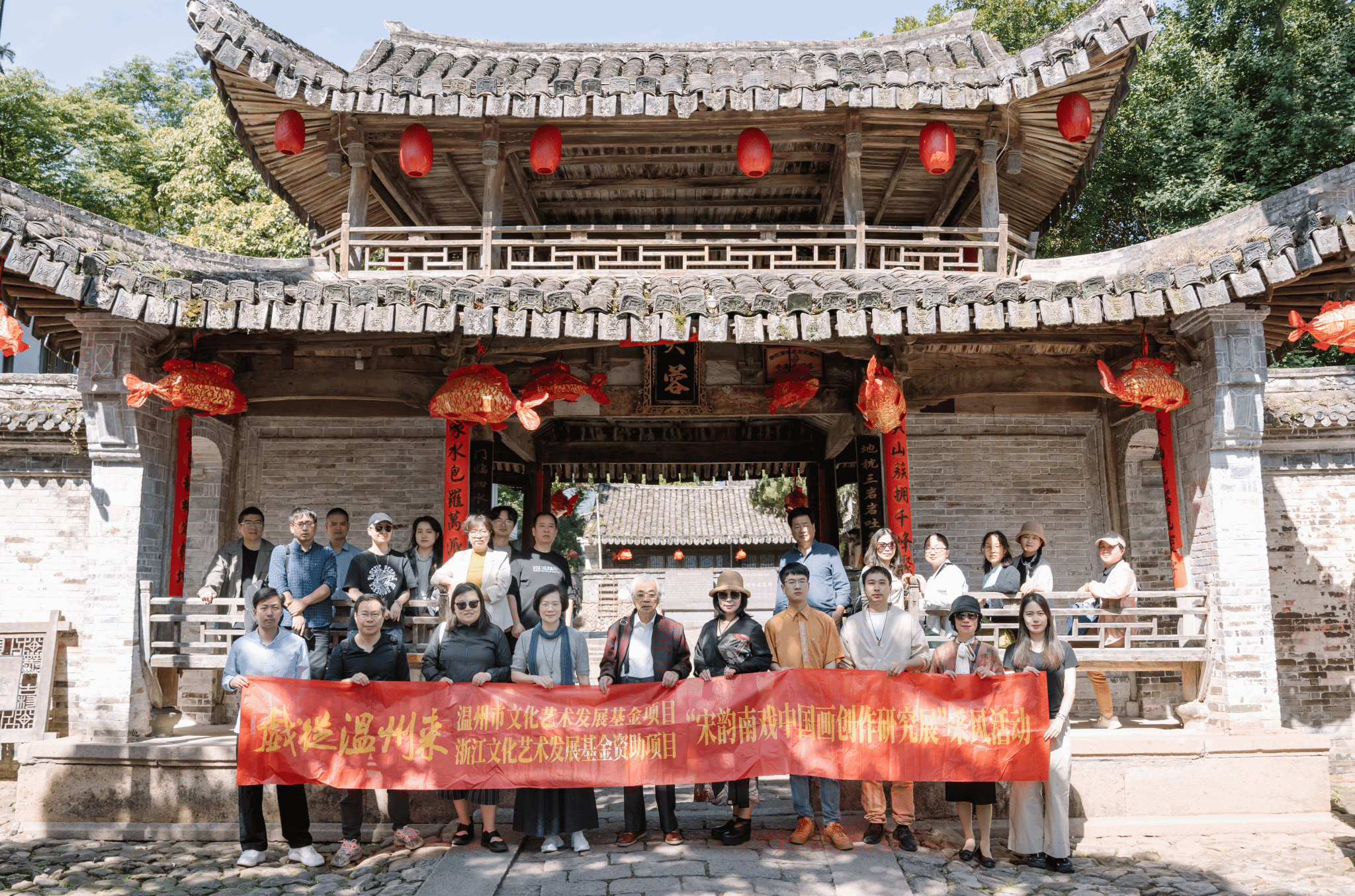 在浙江传统戏曲研究与传承中心前合影留念