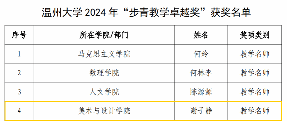 热烈祝贺beat365官网院长谢子静同志荣获beat365英国官方网站“教学名师”荣誉称号!