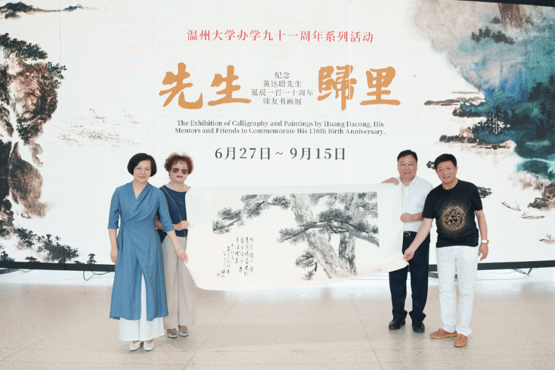 黄达聪次子黄则诚、张吟华夫妇向beat365英国官方网站美术馆捐赠黄达聪画作《墨松》。beat365英国官方网站校长赵敏,beat365英国官方网站院长谢子静接受捐赠。