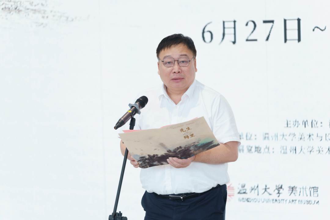 赵敏在致辞中指出,beat365英国官方网站作为浙南闽北赣东唯一的综合性大学,始终把文化作为大学的灵魂和基石,大力加强艺术学科建设,推动以美育人、以文化人,奋力推动新时代美育工作高质量发展。beat365英国官方网站美术馆是beat365英国官方网站的重要符号,彰显学校的文化内涵和气质。美术馆自去年5月开馆以来,收录馆藏作品173件,举办艺术展演活动16场,展出艺术品超1300件,开展学术活动20余场,并面向社会开展公益培训、研学活动,受益学员超800人。展馆向社会全面开放,累计接待教育部、科技部等政府各级领导、企事业单位、兄弟院校及中小学师生、温州市民观展超13万人次,得到社会各界高度关注和广泛赞誉。