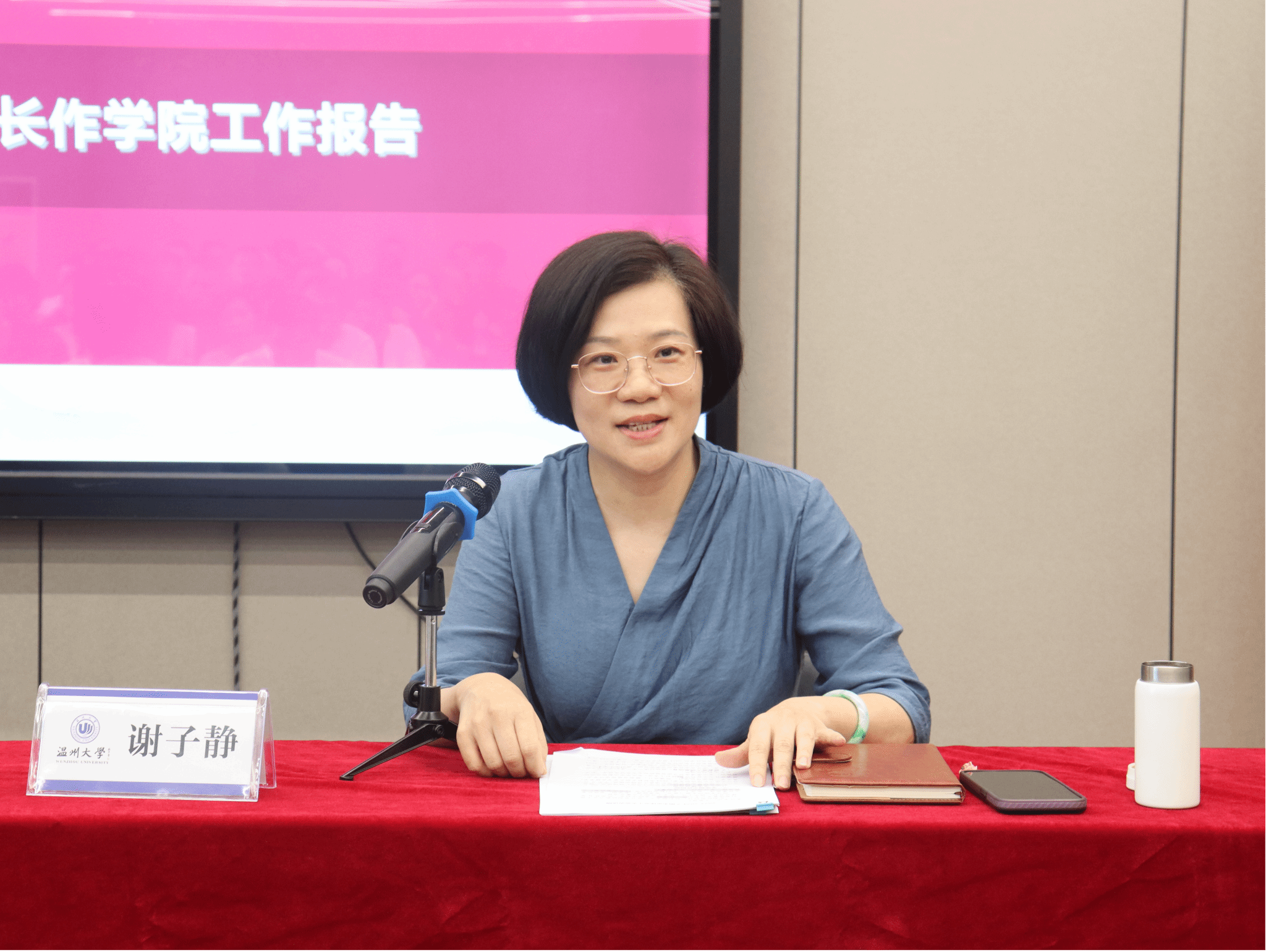 会上,谢子静院长作学院工作报告。她首先充分肯定了过去一个学期各位教职工的辛勤付出和取得的标志性成果,就专业建设、人才培养、学科科研、师资队伍建设、国际合作、美育工作、校地服务等一系列工作进行了回顾和表扬。随后,谢院长传达了学校关于“过紧日子”的会议精神,对六个“一律不得”和八个“严控”作重点要求。最后,谢院长对暑期工作进行具体部署,鼓励全体教职工在学院完成班子和分工调整之际凝心聚力、接续奋斗,迎接美术学院干事创业新气象。