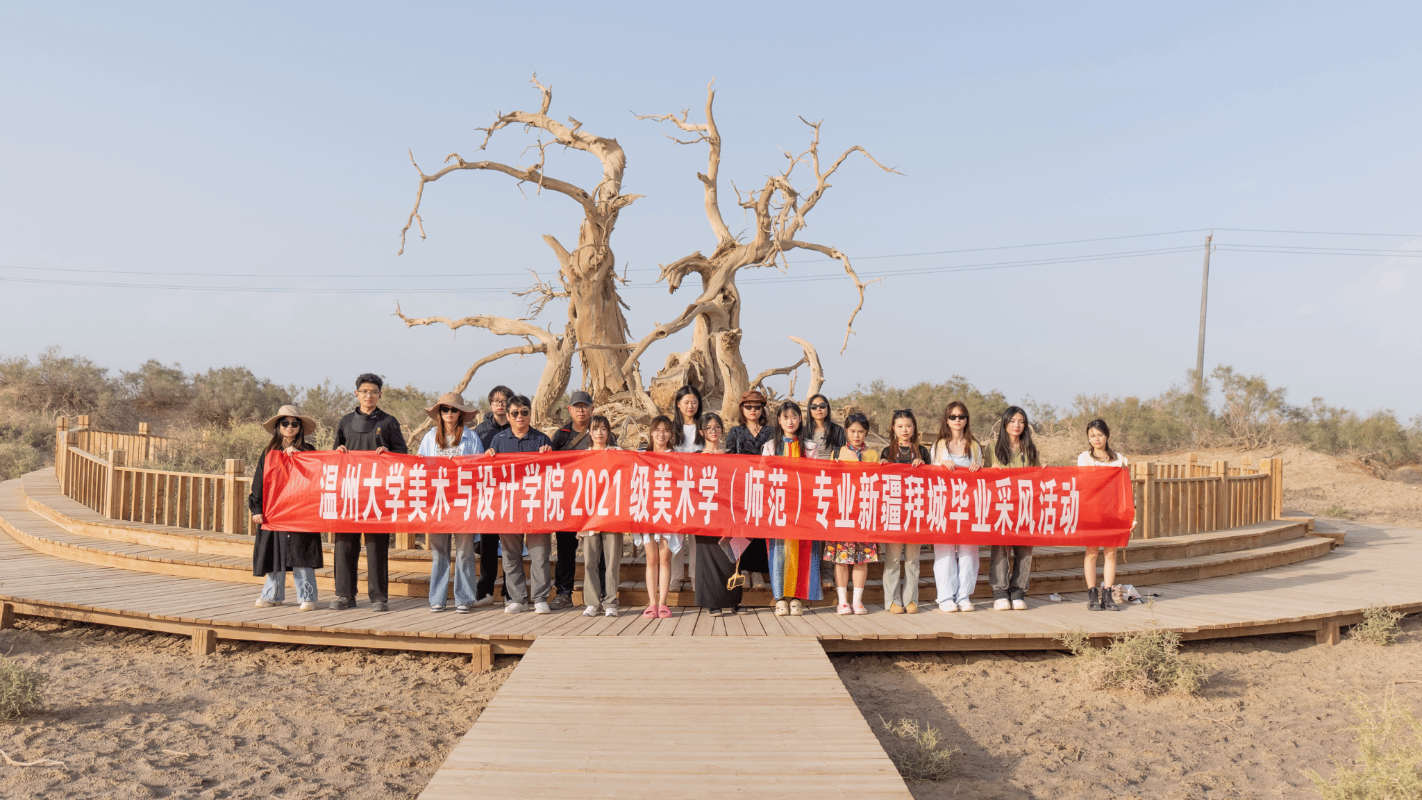 8月31日至9月3日,温州市与新疆阿克苏地区拜城县共同举办“山海共韵,榕杨传情”艺术采风活动。本次活动由中共拜城县委、拜城县人民政府、温州市援建指挥部主办,是温州援疆文化建设的重要项目,旨在通过深度的文化交流,搭建起民族团结的桥梁,促进两地艺术界的深度合作与繁荣。beat365官网beat365英国官方网站美术学师范专业师生与温州援疆工作人员、拜城地区文艺工作者共40余人参与。天山脚下,风光秀丽。在当地文旅部门及援疆工作人员陪同下,采风团队对拜城县老虎台骑兵连、非遗巴扎、民俗街道和博物馆进行考察,深入了解当地风土民情,感受到新疆地区的悠久历史和独特魅力,对近年来我国家对新疆的政策扶持、新疆的发展以及温州援疆成果都有了更加全面深入的了解。beat365官网师生前往克孜尔石窟、红石林景区、塔克拉玛干沙漠、睡胡杨景区、苏杭村等地展开考察,实地感悟、实地领略、实地挖掘,深度体验拜城风貌之美、民俗之美、文化之美,用绘画、摄影、文字等形式记录下新疆壮美的自然风光和文化古迹,通过作品展现了拜城的锦绣风光和奇绝韵味。活动的最后一天,beat365官网师生与拜城当地文艺工作者举行艺术创作交流会,展开深入的互动交流、思想碰撞。同学们介绍展示了采风期间创作的绘画、摄影作品等,并进行现场笔会,共话艺术创作的心路历程,探讨艺术灵感的源泉。一幅幅别具匠心的作品,不仅栩栩如生的彰显了大美拜城的山明水秀,也展示师生们对拜城的喜爱之情。最后,美院带队老师代表温州方面向拜城县捐赠绘画艺术作品,为活动划上圆满的句号。此次活动进一步推动了文化润疆战略的实施,加强了温州与新疆拜城之间的文化联系,更是beat365官网beat365英国官方网站美育教学的深入实践。未来,温州将与拜城县继续深化合作,携手共创更加辉煌的文化成果。