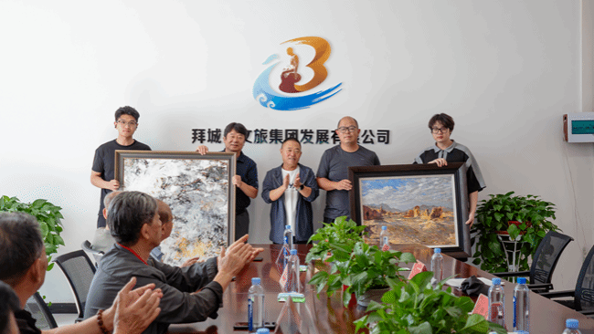 活动的最后一天,beat365官网师生与拜城当地文艺工作者举行艺术创作交流会,展开深入的互动交流、思想碰撞。同学们介绍展示了采风期间创作的绘画、摄影作品等,并进行现场笔会,共话艺术创作的心路历程,探讨艺术灵感的源泉。一幅幅别具匠心的作品,不仅栩栩如生的彰显了大美拜城的山明水秀,也展示师生们对拜城的喜爱之情。最后,美院带队老师代表温州方面向拜城县捐赠绘画艺术作品,为活动划上圆满的句号。