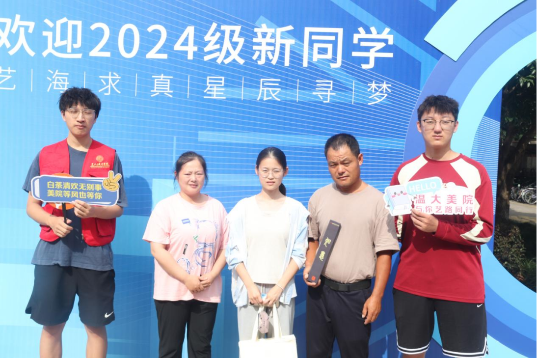 9月4日,beat365英国官方网站迎新日,beat365英国官方网站342名本研新生如期报到,他们怀揣着梦想与期待,相聚于温大美院。怦然“新”喜,全力以赴上午7点,学院辅导员、学生干部队伍与志愿者们早早就位迎新现场,有序开展报到注册相关工作,为新生入学保驾护航。片刻之间,一波又一波新同学大包小裹陆续到达学区,现场氛围逐渐“热烈”,校院领导来到报到点,与新生和家长们热情交谈,共同见证这一重要时刻。 美院报到现场,已有同学迫不及待将新生大礼包“开箱”,一份礼盒格外瞩目,这份学院特别准备的“如意棒”,备受新生喜爱。“希望它成为开启新征程的一支‘神笔’,未来面对学习和生活的难题时,如如意金箍棒般,既有坚不可摧的韧性,又有灵活应变的智慧,以美好且强大的心灵,一路披荆斩棘,一往无前。”2024级新生张敏玲同学说。 美术学院迎新点位上,AI设计的签名打卡墙,融合艺术与科技美学,鼓励同学们站在当下,拥抱未来,手持KT牌写满了祝福,快门一响,定格崭“新”一刻,记录了新生们的兴奋与期待,也成了他们在朋友圈的最新动态。 现场志愿者们搬运行李、耐心答疑、微笑指引......热情如火,事无巨细,每个角落都有他们奔波的身影,以实际行动书写美院人“情”与“暖”的故事,他们用青春激情打造最美“温大名片”。 聆听“新”声 “寓”见关怀 下午3点,校院两级领导走访慰问新生寝室,与新生面对面交流,共话大学生活新篇章,走访过程中了解了学生入住情况,聆听对新生未来大学生活的期待,勉励同学们要树立远大理想,增强责任感和使命感,明确目标定位,尽快适应大学生活,让同学们深切感受到来自学院的关怀。 当生日遇上“迎新日”,美术学院用实际行动给出了最温暖的“仪式感”。报到当天恰逢24美师学(师范)2班阎如真同学生日,学院领导为“小寿星”新生送上蛋糕和鲜花并合影留念,与现场同学齐唱生日歌,为她送上最“暖”生日祝福。