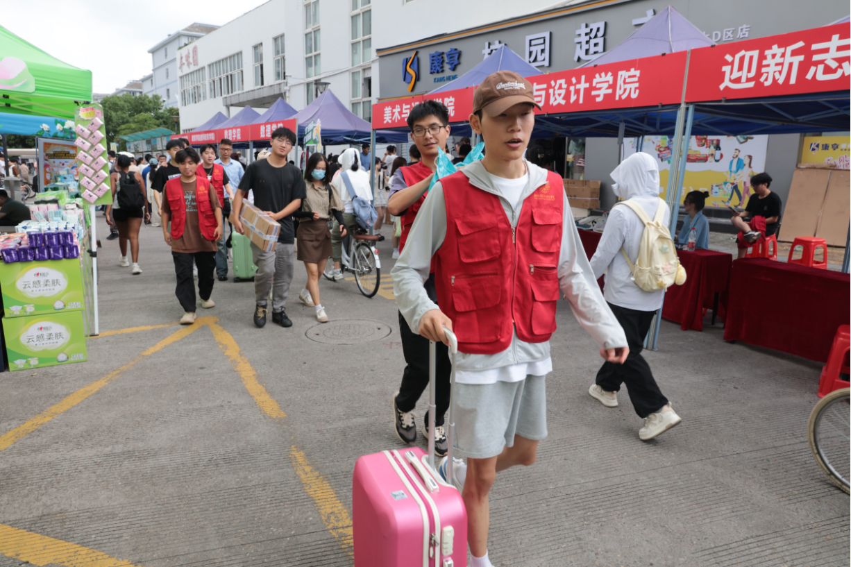 现场志愿者们搬运行李、耐心答疑、微笑指引......热情如火,事无巨细,每个角落都有他们奔波的身影,以实际行动书写美院人“情”与“暖”的故事,他们用青春激情打造最美“温大名片”。