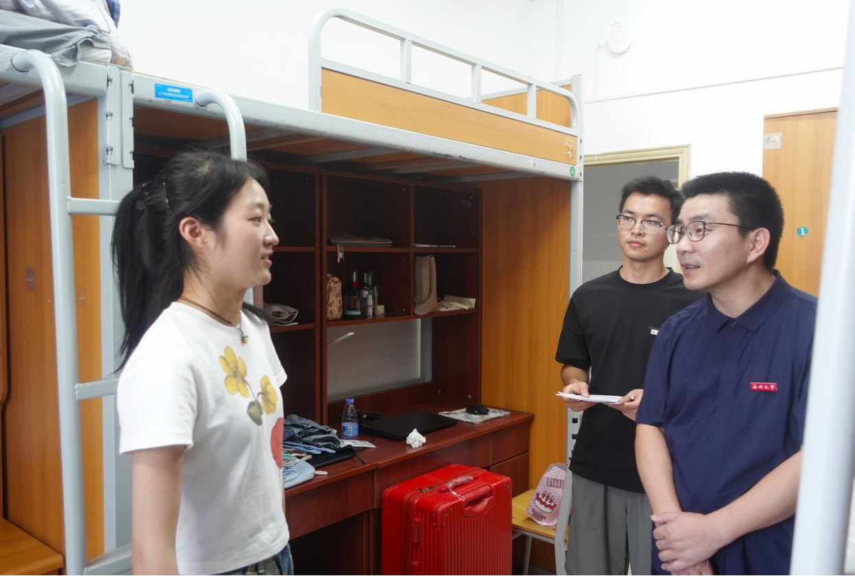 下午3点,校院两级领导走访慰问新生寝室,与新生面对面交流,共话大学生活新篇章,走访过程中了解了学生入住情况,聆听对新生未来大学生活的期待,勉励同学们要树立远大理想,增强责任感和使命感,明确目标定位,尽快适应大学生活,让同学们深切感受到来自学院的关怀。