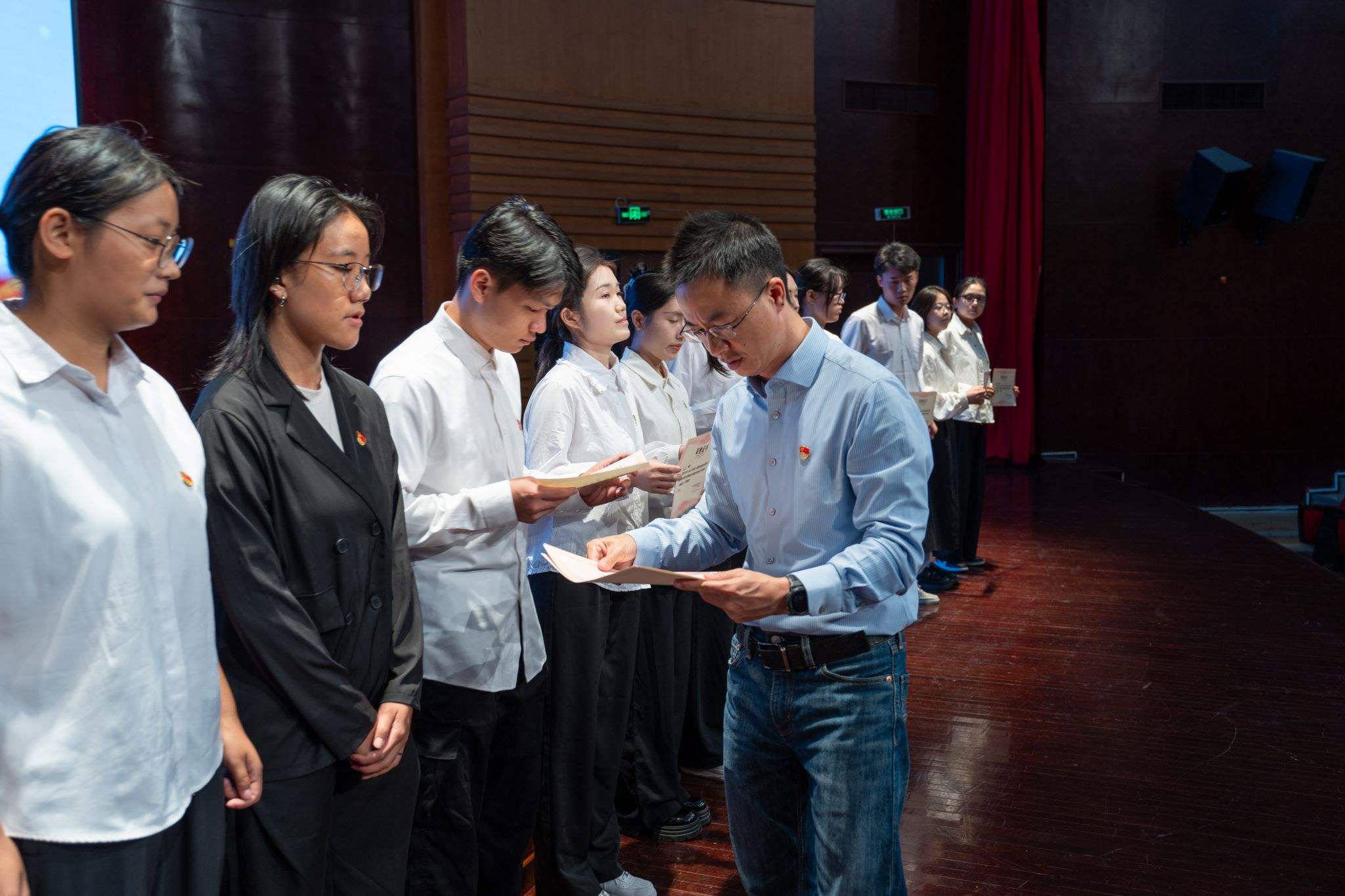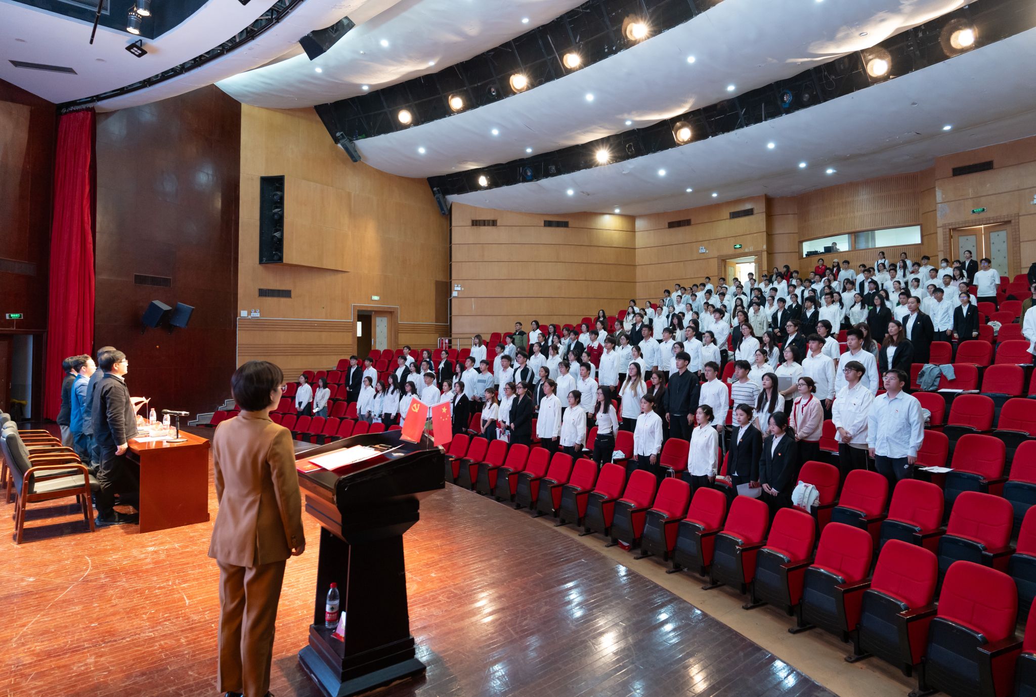 为深入贯彻落实新时代党的建设总要求和新时代党的组织路线,做好新时代党员发展和教育工作,2024-2025学年第一学期中共beat365英国官方网站委员会党校学院分党校(南校联合)预备党员培训班结业典礼于11月11日在南校区音乐厅举行。 计算机与人工智能学院党委副书记、分党校副校长彭小媚老师,机电工程学院党委副书记、分党校副校长方建晓老师,建筑与工程学院党委副书记、分党校校长陈铎老师出席,仪式由beat365英国官方网站党委副书记、纪委书记叶如芳主持。