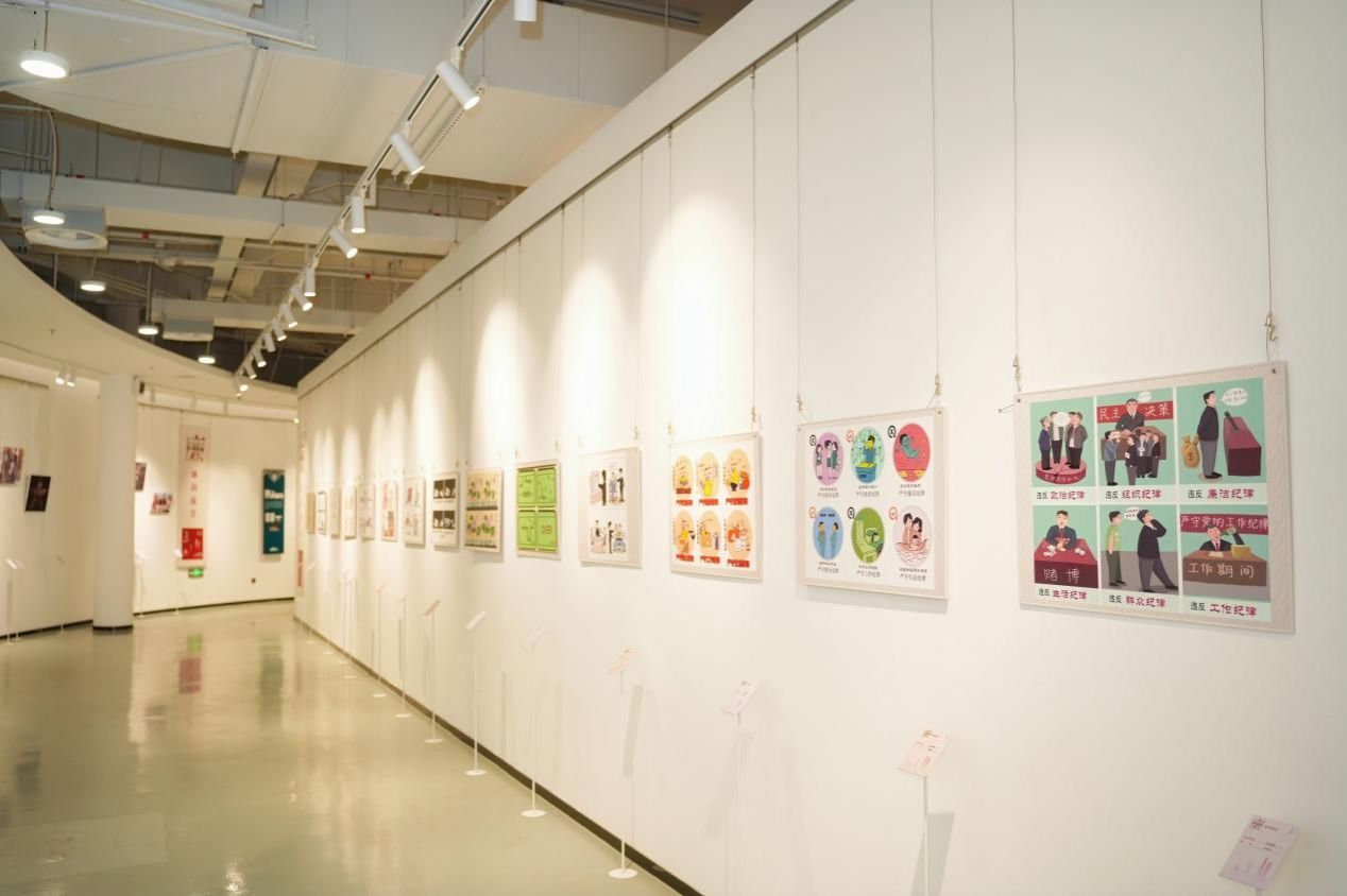 美术馆门口同步展出的,还有各个学院具有专业特色的、师生广泛参与的“一院一品”廉洁文化互动矩阵,鼓励各部门加强协作,强化“清廉建设”责任共同体意识,共同构建廉洁文化教育的长效机制,形成全员参与、全程覆盖、全方位渗透的廉洁文化教育体系,把校园建设成立德树人的绿水青山。