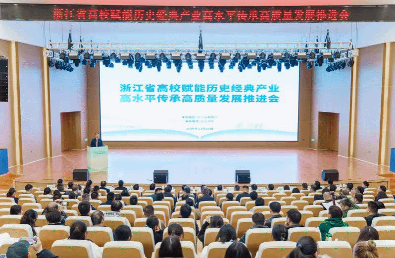 本次会议汇聚政府智慧、高校力量与企业创新,共同探讨历史经典产业在新时代背景下的传承路径与创新发展策略。来自浙江省内多所本科高校、职业院所、文博机构和多家龙头企业方代表,以及行业(协会)拔尖人才代表参加会议,共同见证科教联盟成立。活动现场还先后举行了联合创新平台、联合创新团队、“大师工匠”工作室共建签约等仪式。