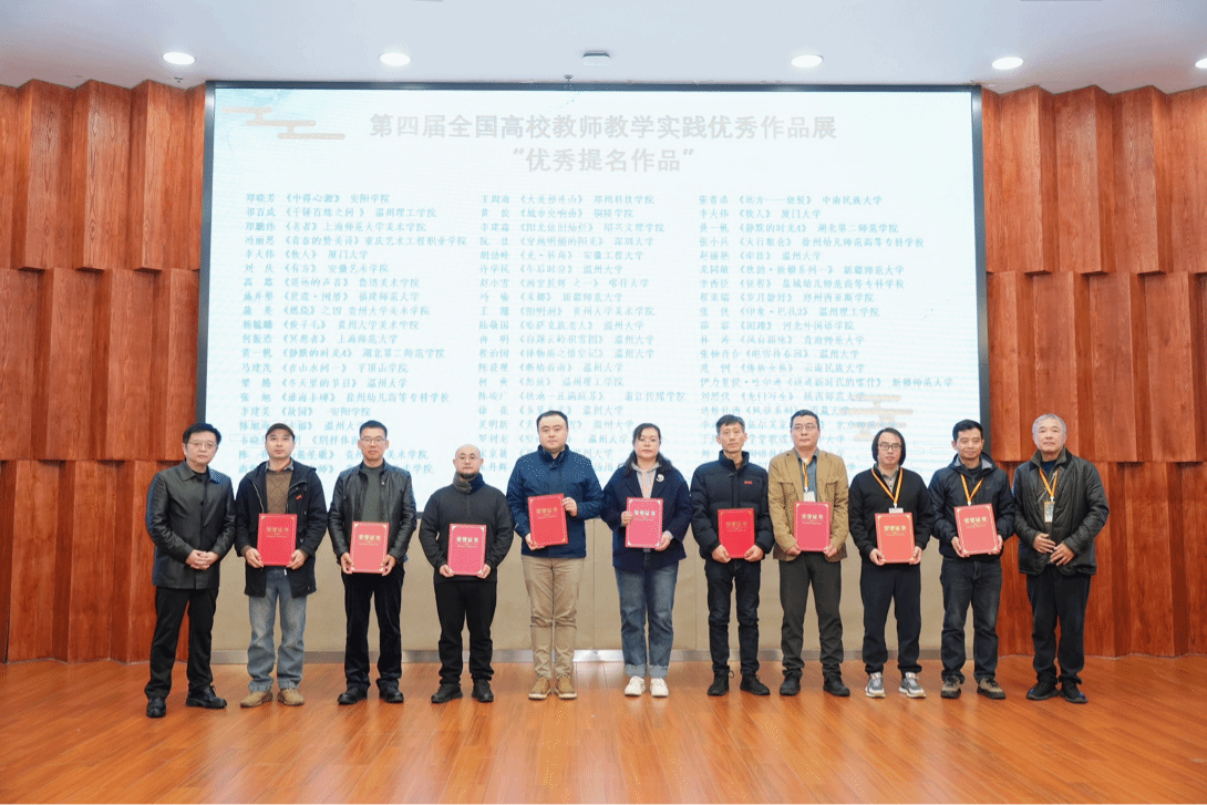 (全国)教育书画协会高等美术教育分会常务副会长黄宗贤、清华大学美术学院社会美育研究所所长李睦共同为获得“第四届全国高校教师教学实践优秀美术作品展评委提名作品”的作者颁发荣誉证书