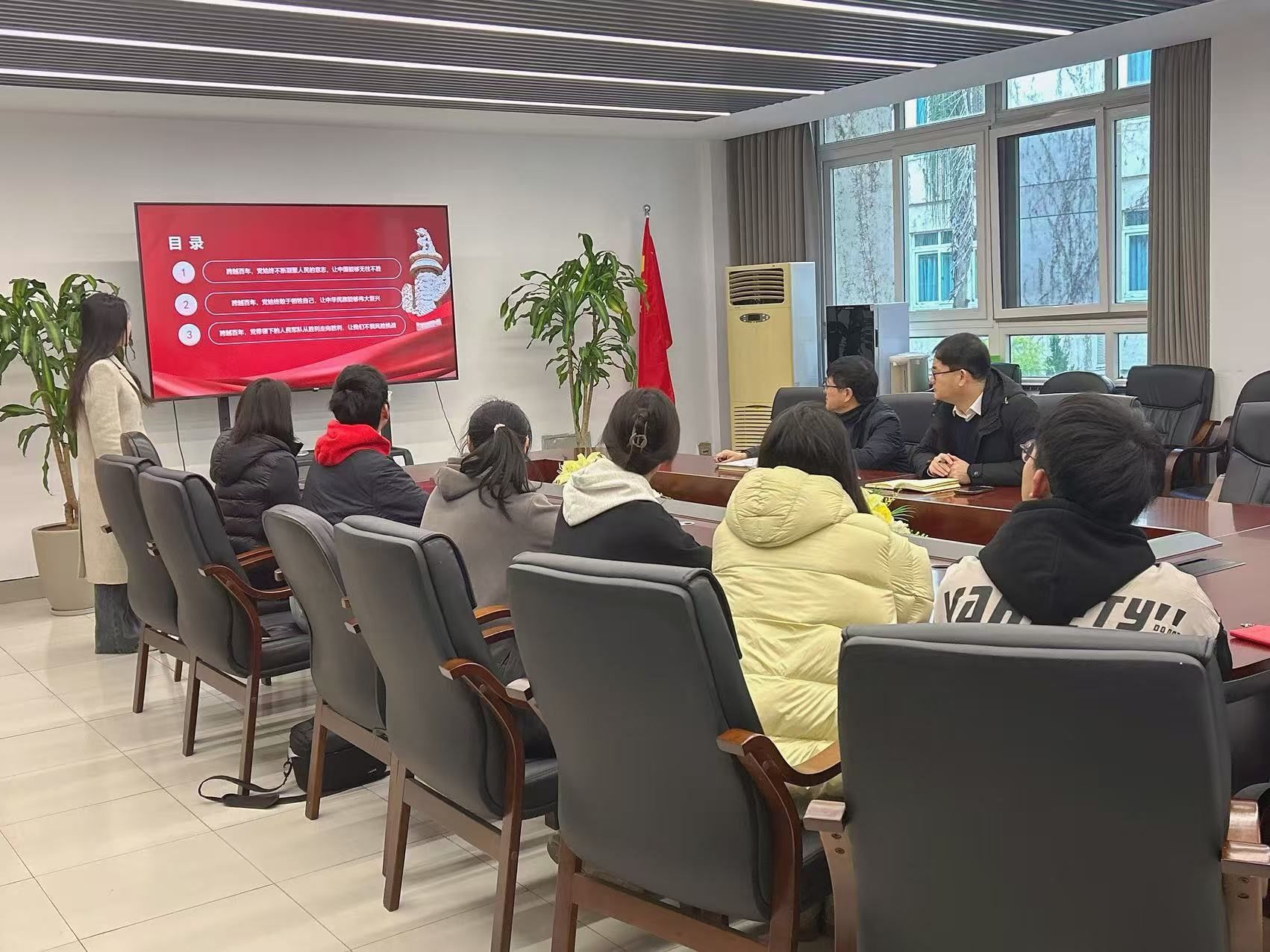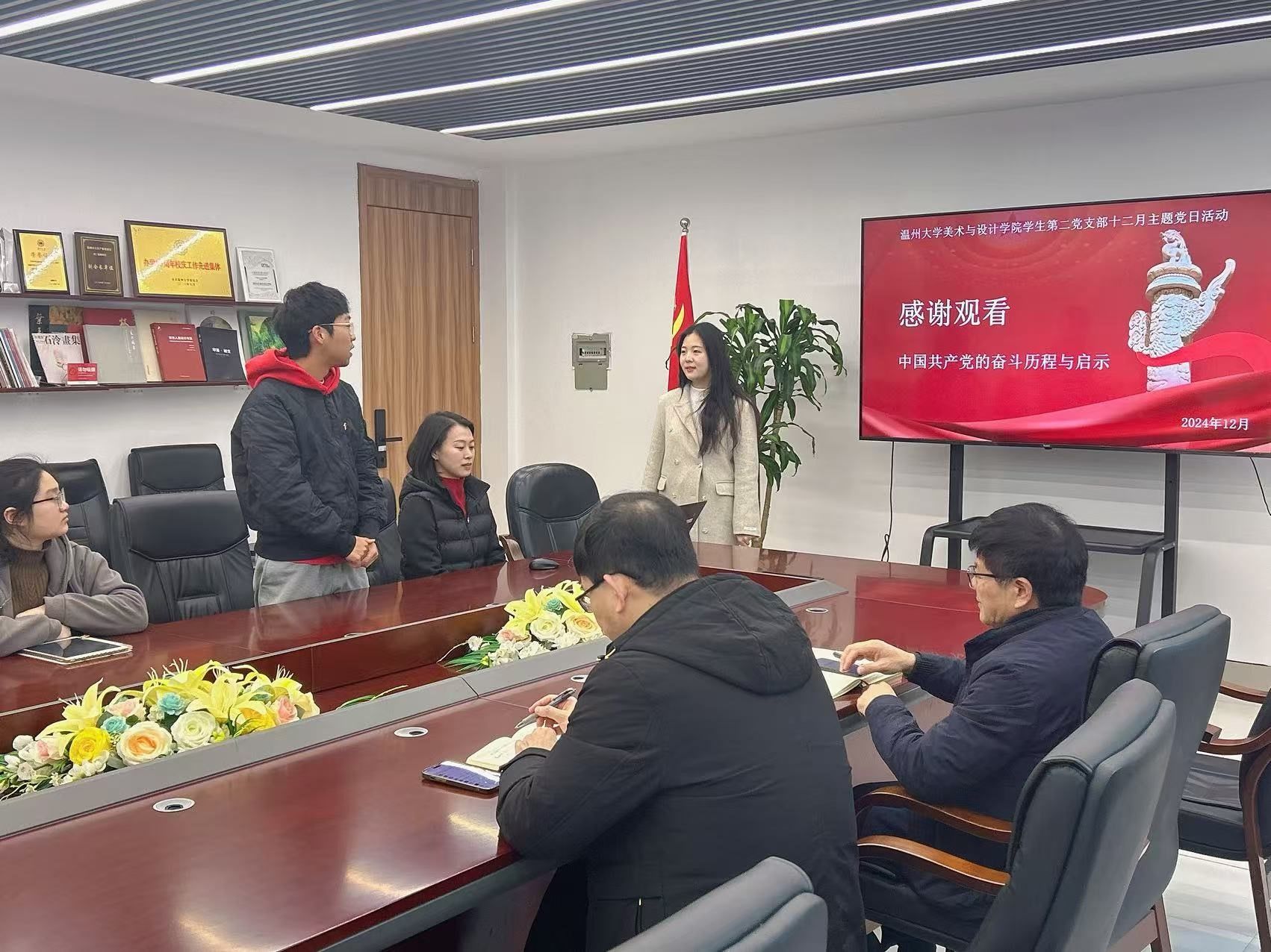 2024年12月31日上午,beat365英国官方网站学生第二党支部在美术楼2B216会议室开展以“跨越百年,党心永恒”为主题的专题学习会,校党委委员王军作为联系该支部的校领导全程参与指导活动。学院党委书记刘青松、学生第二党支部党员全体参加。活动由支部书记陈嘉怡主持。