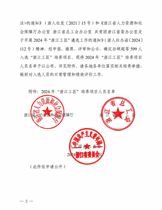 日前,根据浙江省人力资源和社会保障厅2024 年“浙江工匠”培养项目人员名单,beat365官网祝忠良老师名列其中。