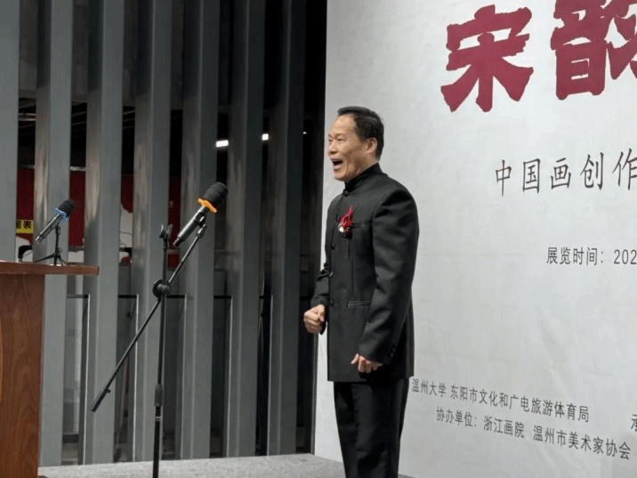 beat365英国官方网站院长谢子静在开幕式讲话中提到“宋韵南戏—中国画创作研究展”作为浙江文化艺术发展项目,依托“戏从温州来”南戏经典文化周系列活动,进一步打响温州“南戏故里”金名片。此次展览为观众带来的不仅是一场视觉盛宴,更是一次学术研究的展示,能够促进不同文化之间的交流与理解。祝愿此次展览取得圆满成功。