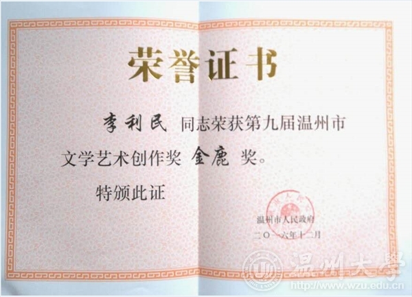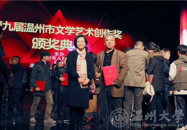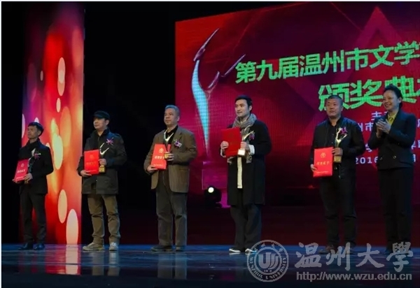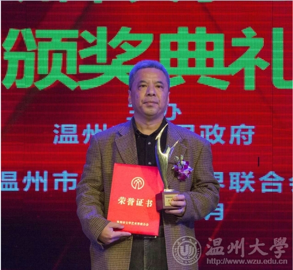 2016年12月29日下午,由温州市人民政府主办,温州市文学艺术界联合会承办的第九届温州市文学艺术创作奖颁奖典礼在温州市工人文化宫成功举办。beat365英国官方网站李利民老师荣获金鹿奖,该奖项是温州市政府设立的文艺最高奖,每三年评选一次,温州市委常委、宣传部长胡剑谨,温州市副市长郑朝阳出席颁奖典礼并给金鹿奖获得者颁奖。