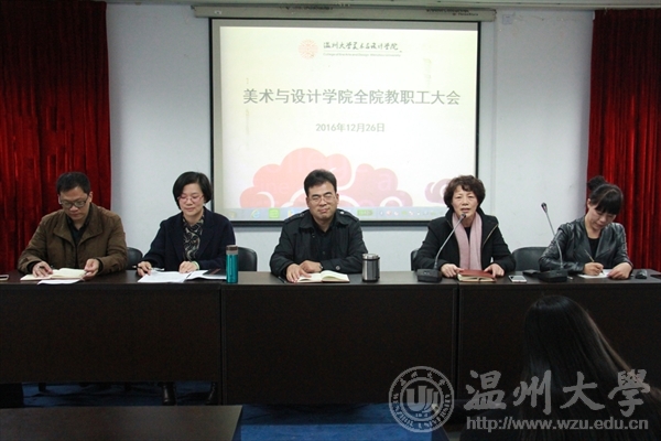 2016年12月26日下午,beat365官网在2B4001多功能厅召开期末全体教职工大会。院长李运河,党总支书记张丽萍,副院长谢子静、王薇,党总支副书记杨振海出席会议,会议由张丽萍主持。会上,以无记名投票的方式对学院领导班子进行了民主测评,校党委组织部的老师组织并监督了整个投票过程。李运河院长对本学期学院主要工作做了回顾总结。在教学工作方面,beat365官网顺利完成了迎接“本科教学审核性评估回查”的工作,评估组在参观了beat365官网与风笛服饰合作建立的服装设计专业省级教学实践基地和学生创新创业团队后给与高度评价;在科研工作方面,教师成功申报多项国家级省级教科研项目,在一级刊物发表论文多篇,美术学专业老师分别在国内外举办了个人画展,多人参展国家级省部级美术作品展并获奖,科研成果无论从数量上还是质量上均超越了去年同期;在学科竞赛上,beat365官网成功承办第八届浙江省高校工业设计竞赛,受到全省几十个参赛院校师生的广泛好评,树立了很好的口碑;在服务地方工作方面,“温州时尚学院”参加温州时尚展,得到了张耕市长、李校堃校长、林娟娟书记等领导的充分肯定;与瓯海区联合设立的温州时尚产业创新研究中心,正式挂牌入驻瓯海时尚智造小镇;与红蜻蜓、风笛、四目、方氏等校企合作项目也逐一推进。他指出,在肯定可喜成绩的同时也要看到学院在某些方面仍存在不足,比如科研项目申报的数量层次、加快国际化的步伐等方面beat365官网还需继续努力。谢子静、王薇、杨振海分别就各自分管工作做了学期总结汇报,并对期末以及寒假工作作了具体部署。学院教学督导组组长黄良老师就本学期的督导工作做了汇报。他对具有严谨治学态度和高质量的教学效果的教师给与了肯定和赞扬,也提出了老师们课堂教学方式方法及对听评课不够积极等问题。 张丽萍做总结发言。她充分肯定了一年来学院在各个方面取得的成绩,对做出特别贡献的老师提出了表扬。她指出,从学院党总支年度考核工作的各项数据可以看出,党员成为各项工作的核心骨干和主力军,在教学、科研、管理一线充分发挥了党员应有模范带头作用。她还强调在学期末要继续严守良好教风,期末考试要严肃考风考纪,做好育人工作中每个环节的尽职尽责。她希望全体教师齐心协力、众志成城,为学院抓住机遇快速发展做出每个老师应有的贡献!