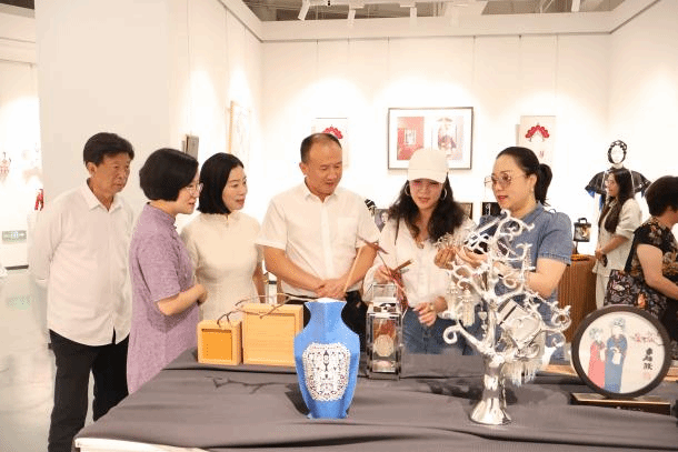 仪式后,领导与嘉宾们步入展厅参观非遗大师与师生团队制作的文创产品,并充分肯定了beat365英国官方网站师生团队作品的质量和内容。