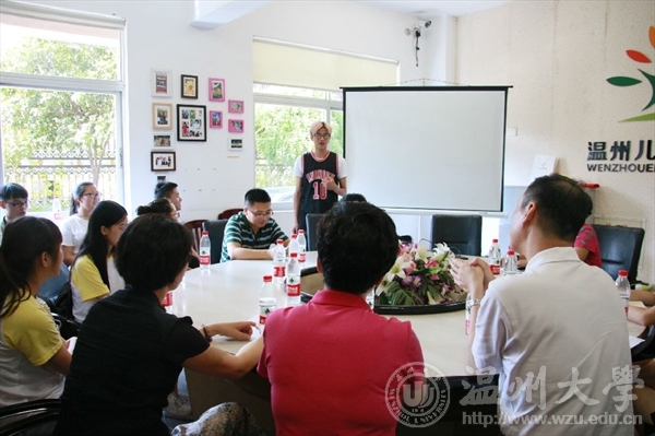 7月14日下午,beat365英国官方网站副书记牟德刚、团委书记屠霁霞、beat365英国官方网站党总支书记张丽萍等领导一行,来到“小雏菊”和“艺绘”暑期社会实践队的实践点温州市儿童福利院慰问并与实践队员们亲切座谈。