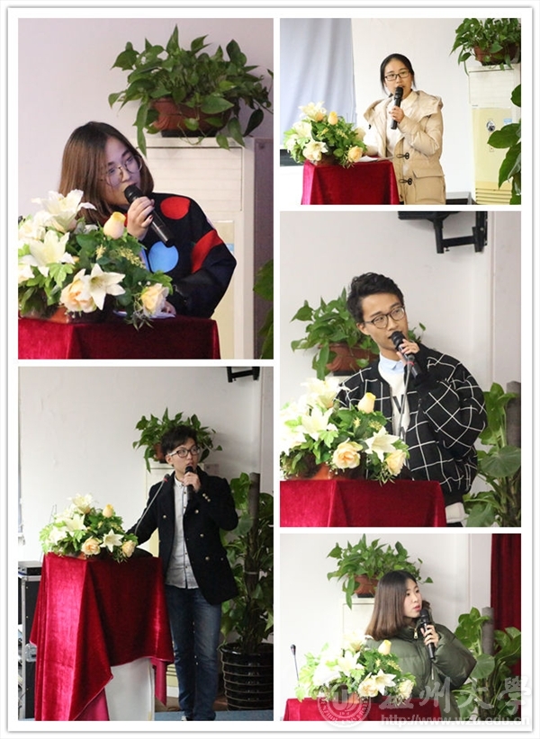 12月30日晚,beat365英国官方网站团委学生会2015-2016学年第一学期第四次全体成员大会在美院楼2B4001召开,参与此次全委会的人员有团委书记叶筱卉老师,团委指导老师商义铮老师,团委副书记孙彦鑫,学生会主席张昇,学生会副主席刘秀娜,学生会副主席周志豪,青协会长杨猛以及团委学生会全体成员。 会议第一项议程是“每月之星”的评选。转眼间,3个月前在这里面试并荣幸的成为了团学的一员,工作时还会手忙脚乱的青涩的干事们,现在已经可以自信地站在团学全体人员面前做工作总结了。干事们以十足的诚意准备的精彩演讲博得阵阵掌声。正如有个干事所说的那样:“你的人生永远不会辜负你,那些转错的弯,走错的路,留下的泪,滴下的汗水,全都会让你成为独一无二的自己。”相信经过团学的工作磨练后,干事们会更加优秀,成为更好地自己。 第二项议程是每个部长汇报本月工作,各部长诚恳陈述了工作的优缺点,也对工作做出了简要说明。 第三项议程是老师讲话。团委书记叶筱卉老师和团委指导老师商义铮对于“每月之星”的演讲表示非常欣喜。团委书记叶筱卉老师说,“每月之星”不仅展示了个人形象,也展示了部门风采。同时老师也建议干事们多谈自己的工作成长,和具体的点滴会更好展示个人的学习收获。同时,叶老师也分享了她的体会心得。叶老师说,比起成绩,成长更重要。我们现在获得的成绩是对我们付出的认可,希望同学们工作中得到锻炼,有所成长。在成长中,我们不能随波逐流,要做好自己的选择,并在现在和将来做好自己。看看自己今天做了什么,有什么可以引领自己,使成长在足够长的时间里得到积淀,再回过头给自己做一个成长鉴定。 最后,学生会主席张昇的讲话让同学们体会到身为团学一员每个人工作的重要,和必须的责任感。团委学生会在和谐的气氛中结束了,相信优秀的干事们可以在工作中得到更多磨砺,让美院团学更加精彩。图:设计宣传部文:设计宣传部