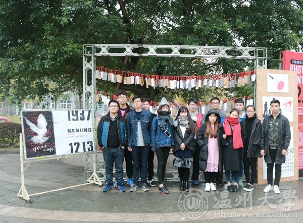 虽然天公不作美,寒风中还夹着些许雨滴,可依然浇不灭温大学子对国家公祭日的祈愿。本次活动展出了手绘悼念大海报及多张手绘宣传公祭漫画,同时开展了温大学子亲手写寄语、挂寄语活动,一同为南京大屠杀遇难人民哀悼,缅怀抗日先烈,不忘国耻,铭记历史。