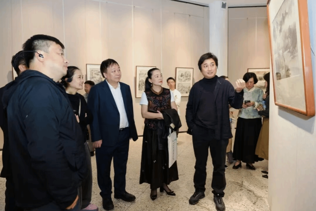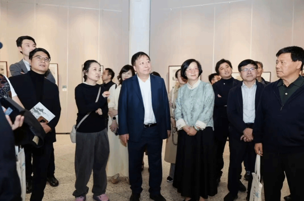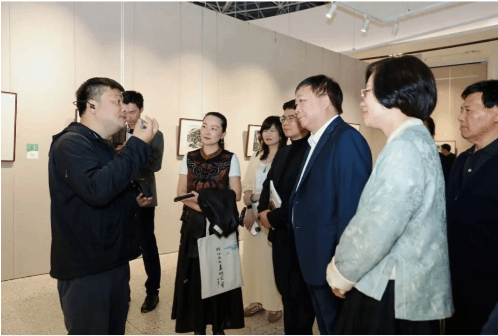 合影结束后,林海钟会长带队导览,结合作品讲解山水笔墨的传承与创新,引导嘉宾感受“致广大而尽精微”的山水艺术境界。