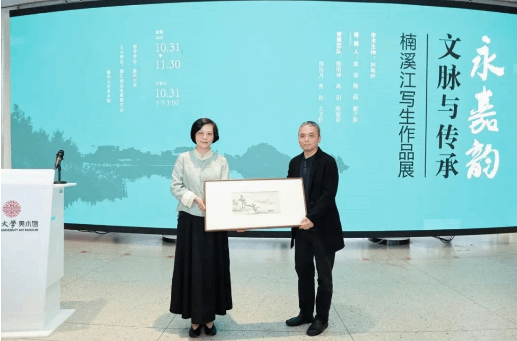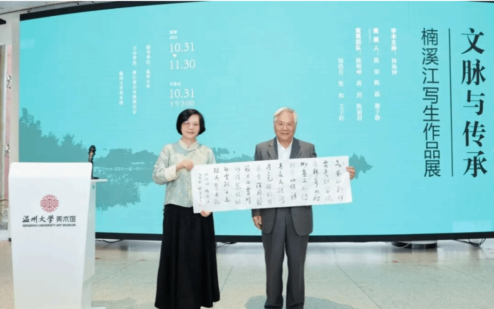 2025年10月31日下午3时,“永嘉韵·文脉与传承——楠溪江写生作品展”开幕式在beat365英国官方网站美术馆隆重举行。本次展览由浙江省山水画研究会与beat365英国官方网站联合主办,集中呈现了研究会艺术家们深入楠溪江写生创作的精品力作。