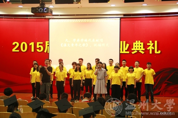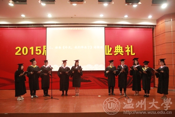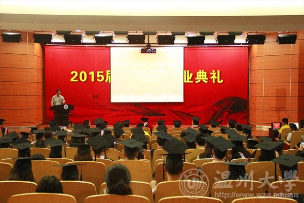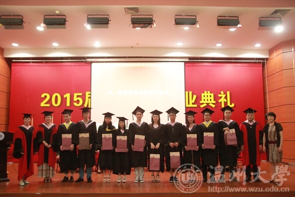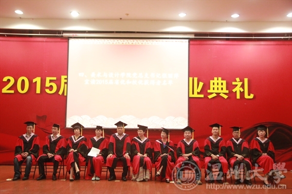 6月17日下午,beat365英国官方网站在岩松堂雁山厅隆重举行2015届本科生毕业典礼暨学位授予仪式。出席典礼仪式的领导有:beat365英国官方网站校长蔡袁强、beat365英国官方网站院长李运河、党总支书记张丽萍、副院长谢子静、副院长王薇、办公室主任李丽、学生科科长叶如芳,美术系主任陈伟、设计系主任朱广宇、服装系主任陈明艳、教授舒湘鄂、教授魏静、教授邓国祥、教授李勋祥、教授蔡瑞蓉、博士张晓剑。此外,全体毕业班班主任、教师代表、全体毕业班同学参加了本次典礼。学院党总支副书记杨振海主持典礼。 首先,进入第一篇章《只如初见 恍如昨日》,主要有电子相册的播放、微电影《献给毕业的你》、以及诗歌朗诵《今天,我们毕业了》等内容。追忆四年,一幕幕场景、一段段音符,串连成一部画面与音乐交织的大学电影,播放着曾经的快乐与忧伤,记录着同学们曾经的青春与过往,也见证着拥有的友谊与深情! 随即进入第二篇章《青葱年代 凤凰花开》部分,学院副院长谢子静宣读了校优和院优毕业作品获得者名单,学院党总支书记张丽萍宣读了省优和校优毕业生获得者名单,院长李运河、书记张丽萍、美术系主任陈伟、设计系主任朱广宇、服装系主任陈明艳、教授舒湘鄂、教授魏静、教授邓国祥、教授李勋祥、教授蔡瑞蓉、博士张晓剑一一为他们颁奖、合影留念以资鼓励。 紧接着典礼进入第三篇章《亦师亦友 常忆相思》部分,学院为全体毕业生赠送纪念品——由美院学生原未手工皮具工作室制作的卡包。 为了更好的与毕业生保持联系,学院特意设立了各班级的校友联络员,学院副院长王薇宣读了名单,院长李运河、书记张丽萍为每位校友联络员颁发聘书。 接着,由省优毕业生11美本师范班马俪净代表2015届毕业生发言,她回忆了在温大的学习与生活经历,并表达了毕业生们即将离开的不舍和即将高飞的壮志。精彩的发言引起了在场毕业生们的共鸣,赢得了阵阵的掌声。 至此进入第四篇章《寄语明天情深道远》,院长李运河为2015届全体毕业生致辞!他祝愿大家以正确的世界观、人生观、价值观来指导自己的选择。志存高远,增长知识,锤炼意志,让青春在时代进步中焕发出绚丽的光彩,未来的自己,一定会感激现在努力的自己。 接着在校的学弟学妹代表为全体毕业生献唱《温大青年之歌》。 最后,典礼进入高潮部分,由beat365英国官方网站校长蔡袁强为每位毕业生一一拨穗、颁发学位证书,并合影留念。这隆重的毕业典礼将成为每位学子心中最美好的回忆。祝福毕业生同学们明天更加辉煌灿烂!前程似锦!