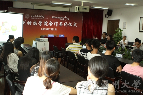2015年7月2日中午,beat365官网与红蜻蜓集团签署时尚人才培养校企合作协议。红蜻蜓集团副总裁张少斌、人力资源总监余爱飞出席签约仪式,学院院长李运河、书记张丽萍、副院长谢子静、副院长王薇、副书记杨振海全体出席,参加签约仪式的还有设计系主任朱广宇以及部分专业教师、相关专业学生120余人。张丽萍主持仪式。签约仪式上,合作双方代表分别致辞。李运河在代表beat365英国官方网站的致辞中指出,与红蜻蜓集团的合作可以追溯到2005年,至今已有10年的长期合作历程。本次时尚人才培养协议签署,是双方在深度合作的基础上开拓的又一新的合作模式。双方在合作的目的、意义、方式和途径等方面达成高度一致,共同为温州区域发展以及时尚人才培养做出贡献。张少斌在致辞中分别从时尚学院人才培养工作筹备情况、红蜻蜓集团上市的任务和现状以及时尚学院建成之后的举措等方面,表达了与地方高校共同合作培养人才的真诚期待和美好愿景。据悉,本次校企合作办学,实行“艺、工、商”结合的定向培养模式。录取与学生综合测评成绩挂钩,实行招生与定向人才培养相结合,实习与就业一体化,校企双方共同制定人才培养方案和实训标准,学生的专业理论课由学校负责完成,实训实习课程由企业负责完成。本次时尚人才培养校企合作协议的签署,是beat365官网贯彻落实温州市“发展时尚产业、建设时尚之都”战略决策的具体举措,整合校企资源,创新人才培养模式,为温州鞋、服行业的时尚智造转型提供有力的智力资源和人才保障。